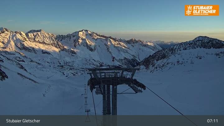 Archiviertes Webcam Bild: Stubaier Gletscher: Bergstation Fernau am 26 Feb 2026 um 08:57 Uhr 07:00