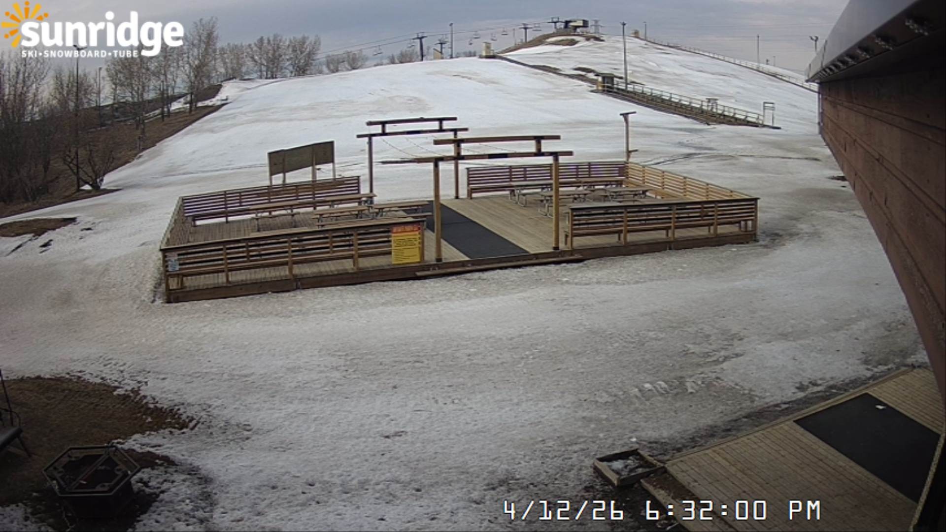 Archiviertes Webcam Bild: Sunridge Bunny Hill - Blick vom Chalet im Tal am 12.04.2026 um 14:55 Uhr 06:00