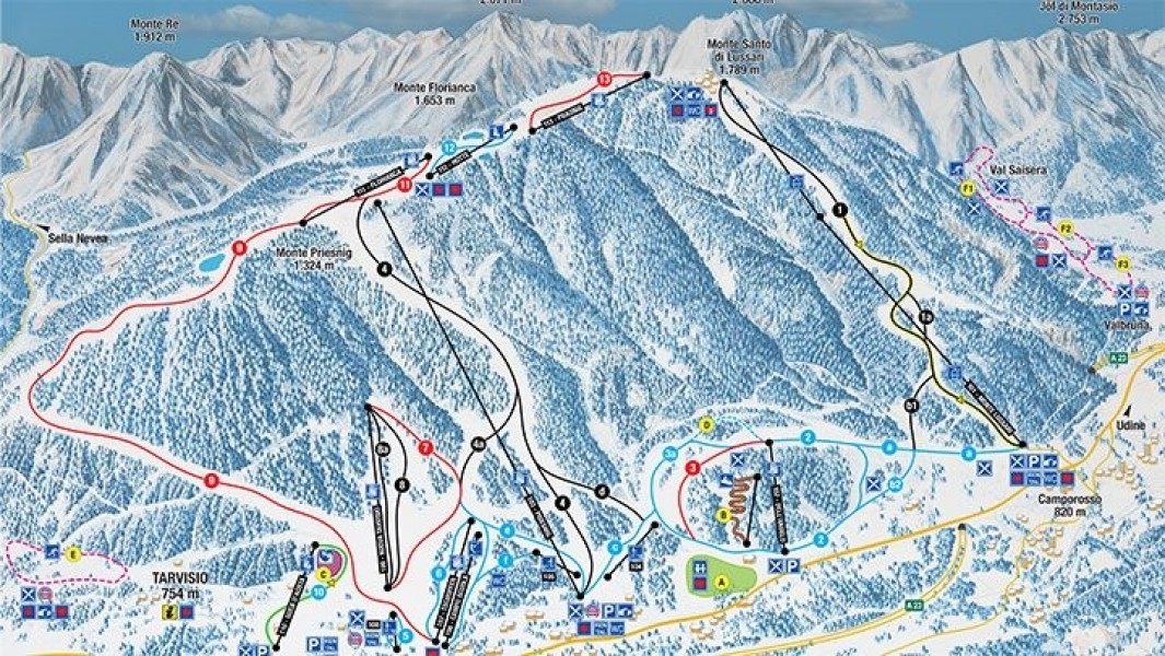 - Mit 24 km Pisten ist Tarvisio - Monte Lussari unter den 3 größten Skigebieten in Friaul-Julisch Venetien.