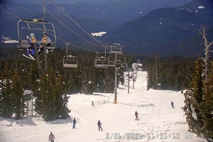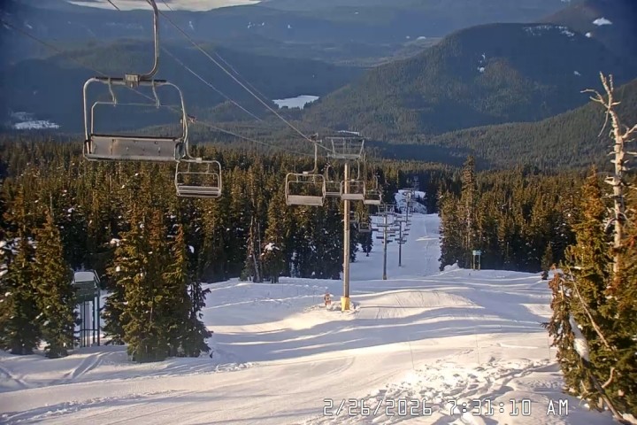 Archiviertes Webcam Bild: Timberline Lodge: Webcam Jeff Flood Express am 26 Feb 2026 um 12:55 Uhr 02:00