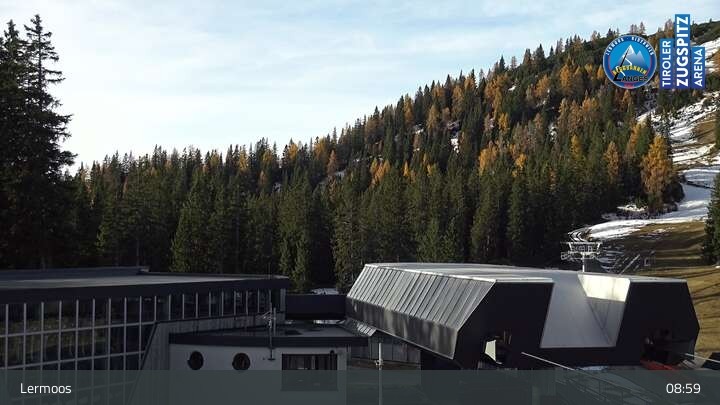 Sicht von der Grubig Alm ins Skigebiet Lermoos Grubigstein.