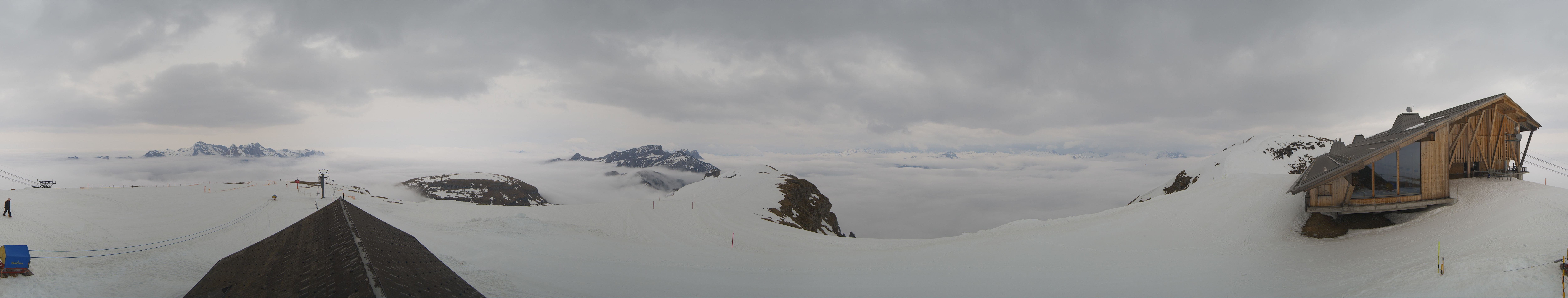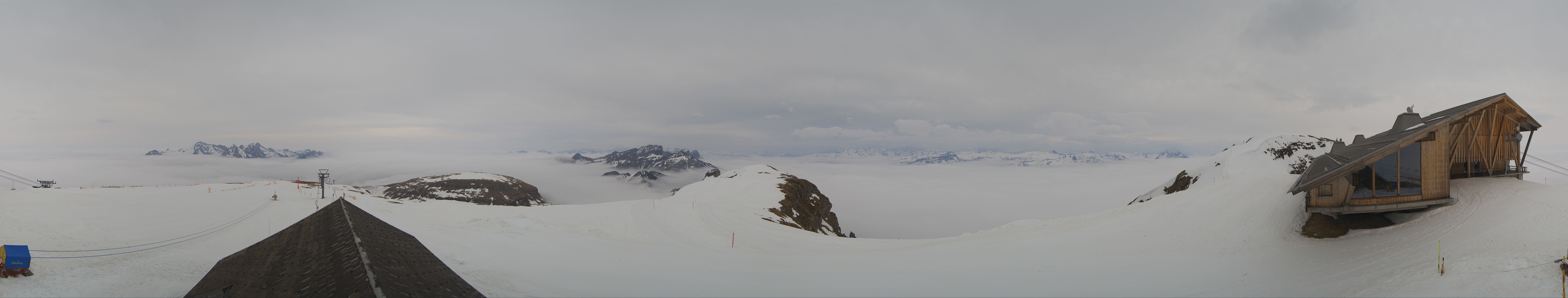 Direkt am Gipfel des Chäserrugg im gleichnamigen Schweizer Skigebiet gelegen, bietet die Roundshot-Cam einen fantastischen 360-Grad-Blick über die Churfirsten in der Region Toggenburg.