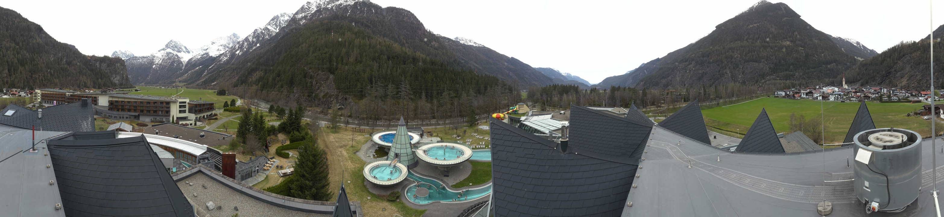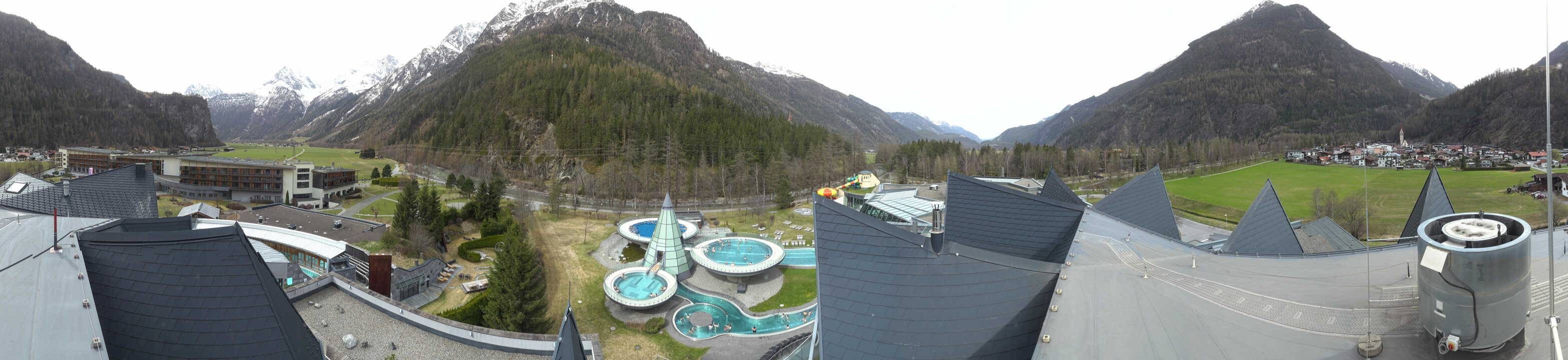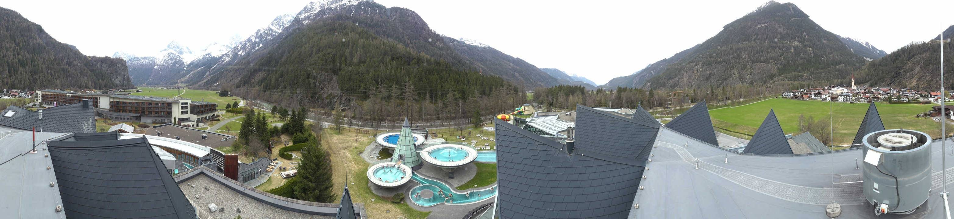 Archiviertes Webcam Bild: Längenfeld: Blick auf Aqua Dome am 12.04.2026 um 14:10 Uhr 14:00