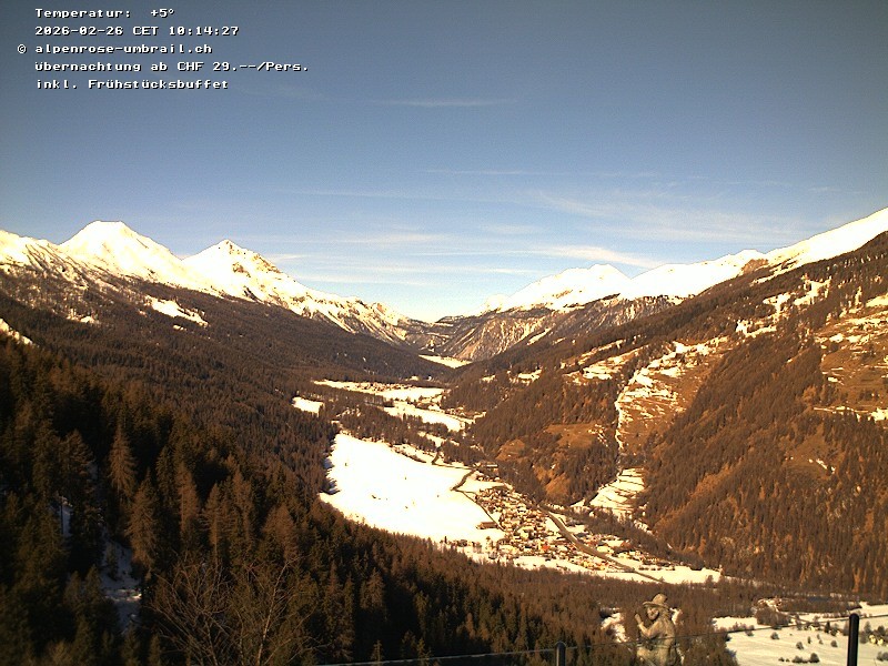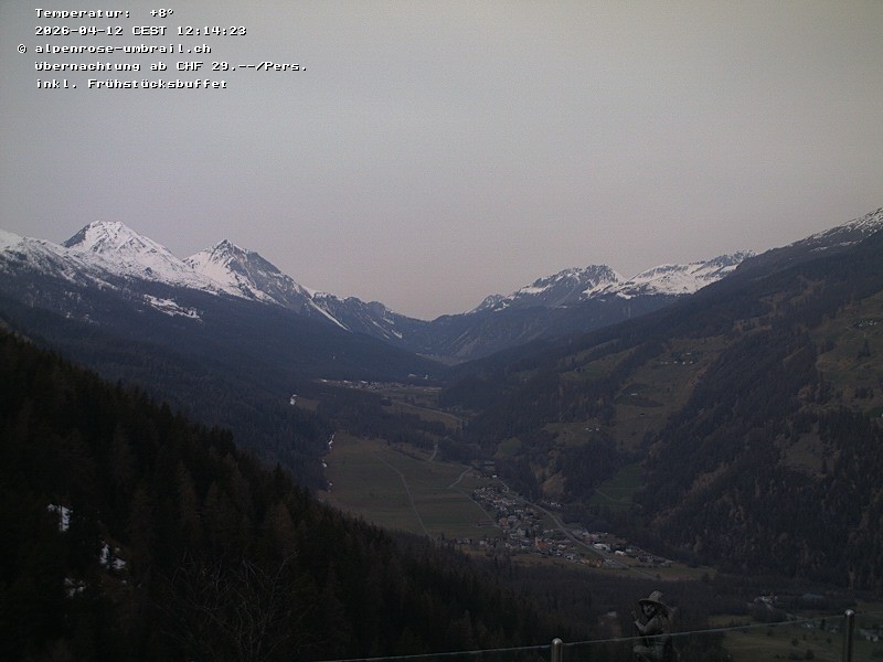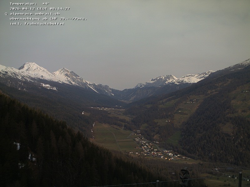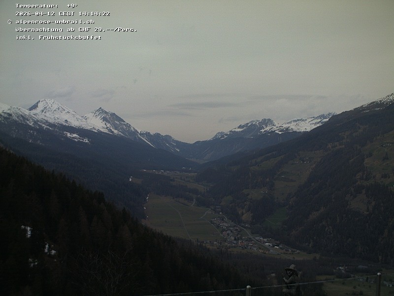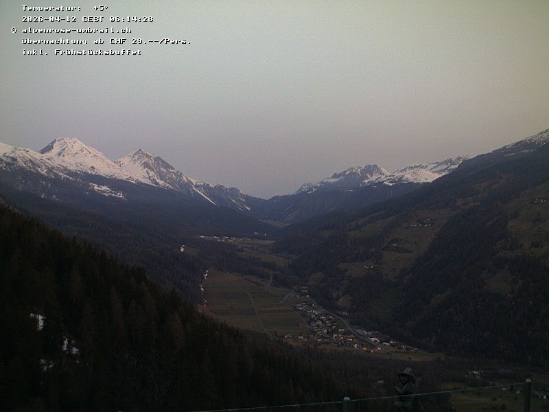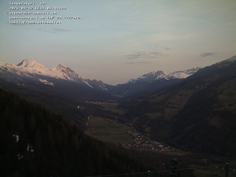 Blick vom Gasthaus Alpenrose auf das Val Müstair