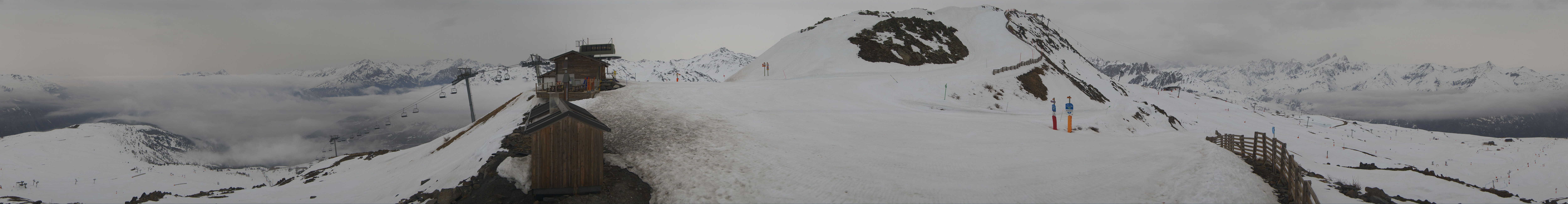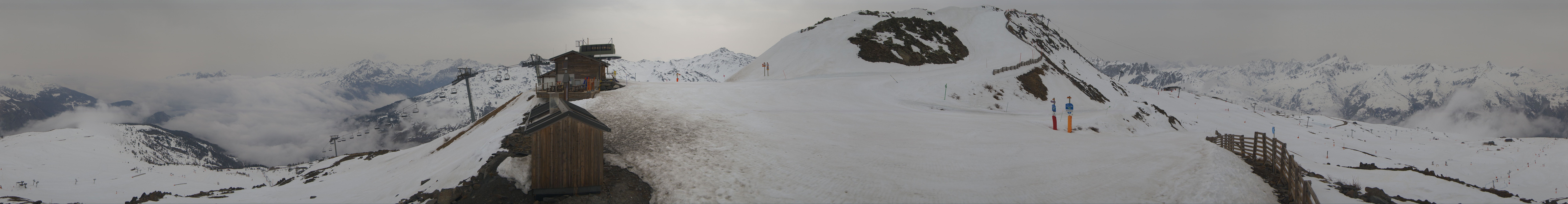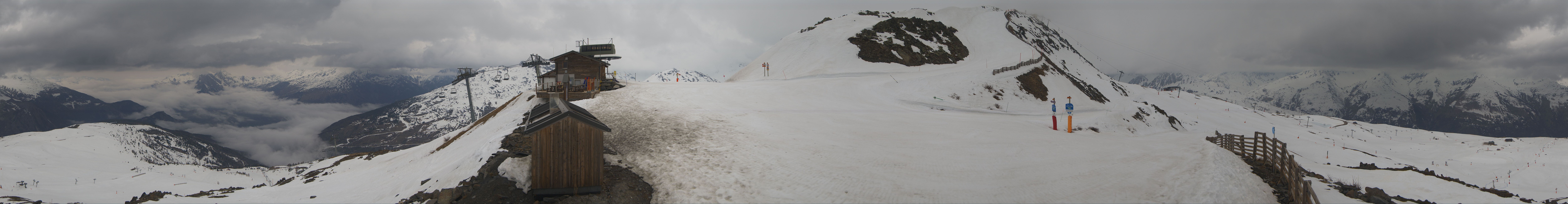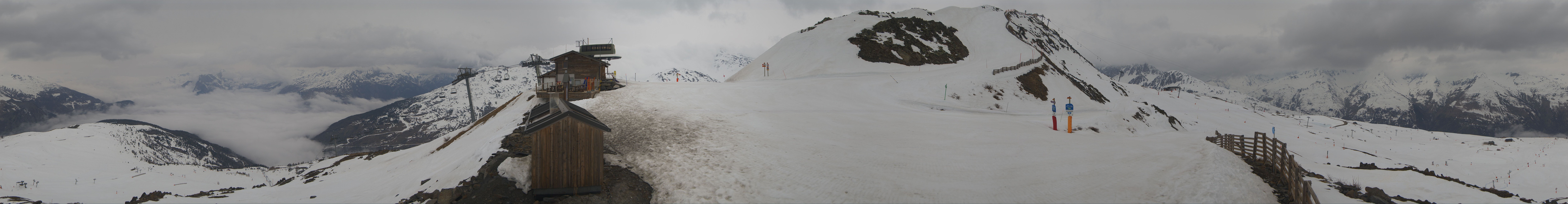 Auf über 2430 Meter steht diese 360-Grad-Panoramakamera, die den Blick über den Gipfel im Skigebiet Valmeinier schweift. Hier beginnt die leichte Piste Nr. 15, die auch im Blickfeld dieser Livecam steht.