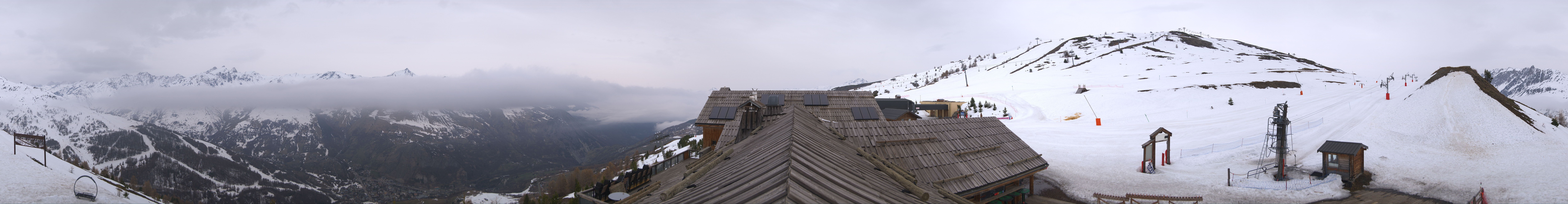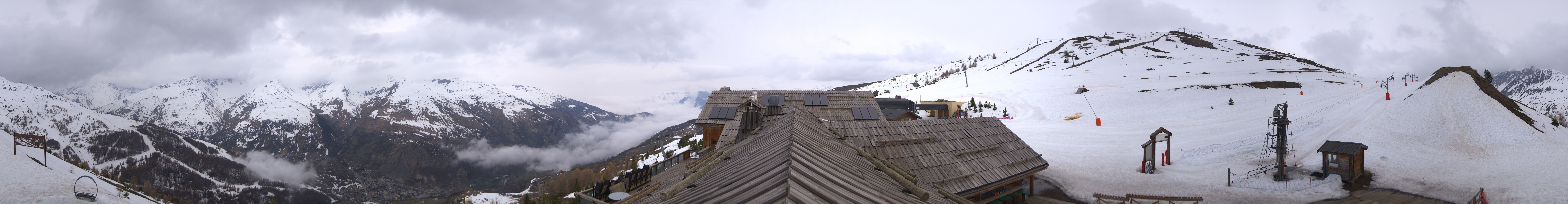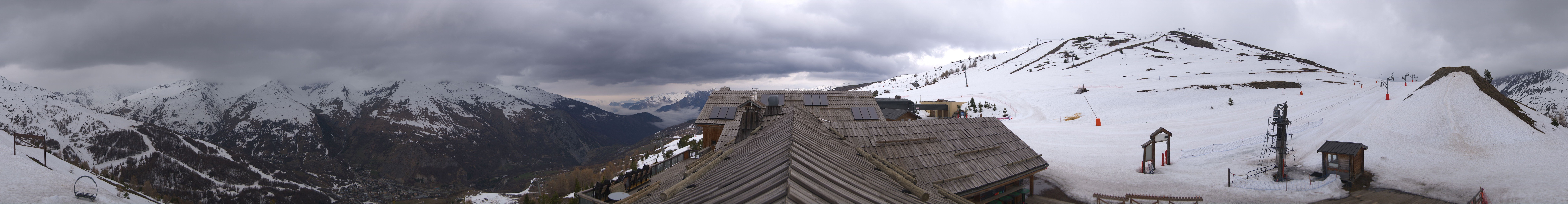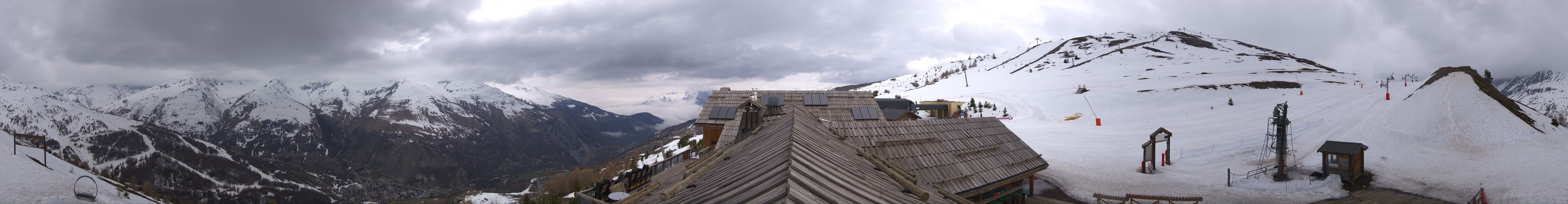 Genieße den Ausblick vom Dach des Restaurants L'Alp De Zélie neben der Bergstation der Gondel Crêt de la Brive auf den Tellerlift Séa sowie die beiden Sessellifte Lac de la Vielle und Brive 2 im Skigebiet Valloire.