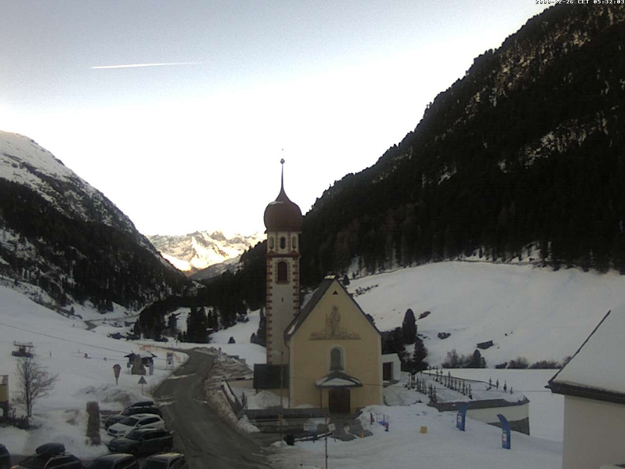 Archiviertes Webcam Bild: Vent - Blick zur Kirche und den Stubaier Alpen am 26 Feb 2026 um 06:45 Uhr 05:00
