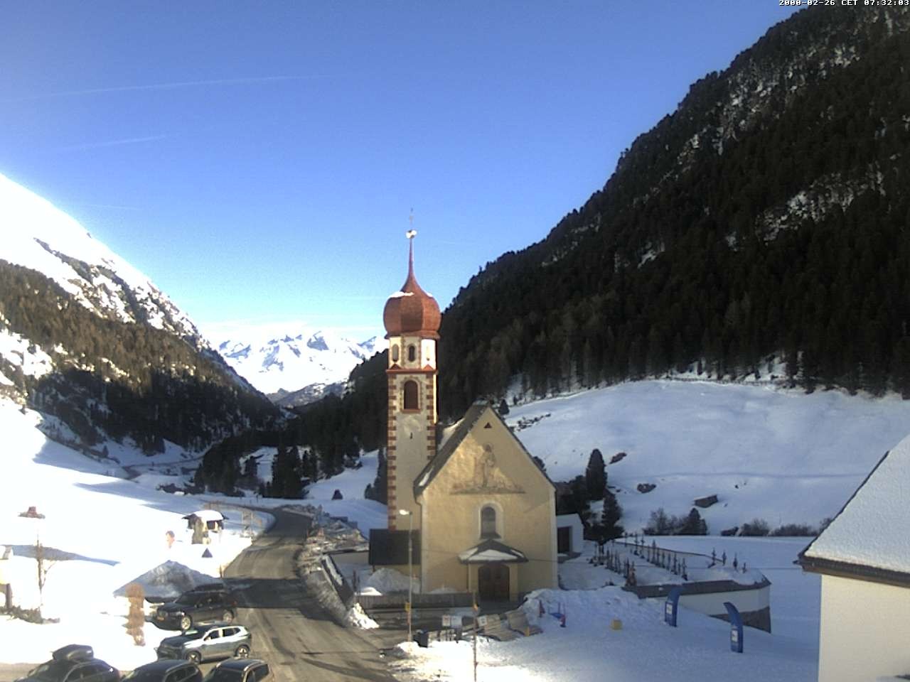 Archiviertes Webcam Bild: Vent - Blick zur Kirche und den Stubaier Alpen am 26 Feb 2026 um 07:45 Uhr 06:00