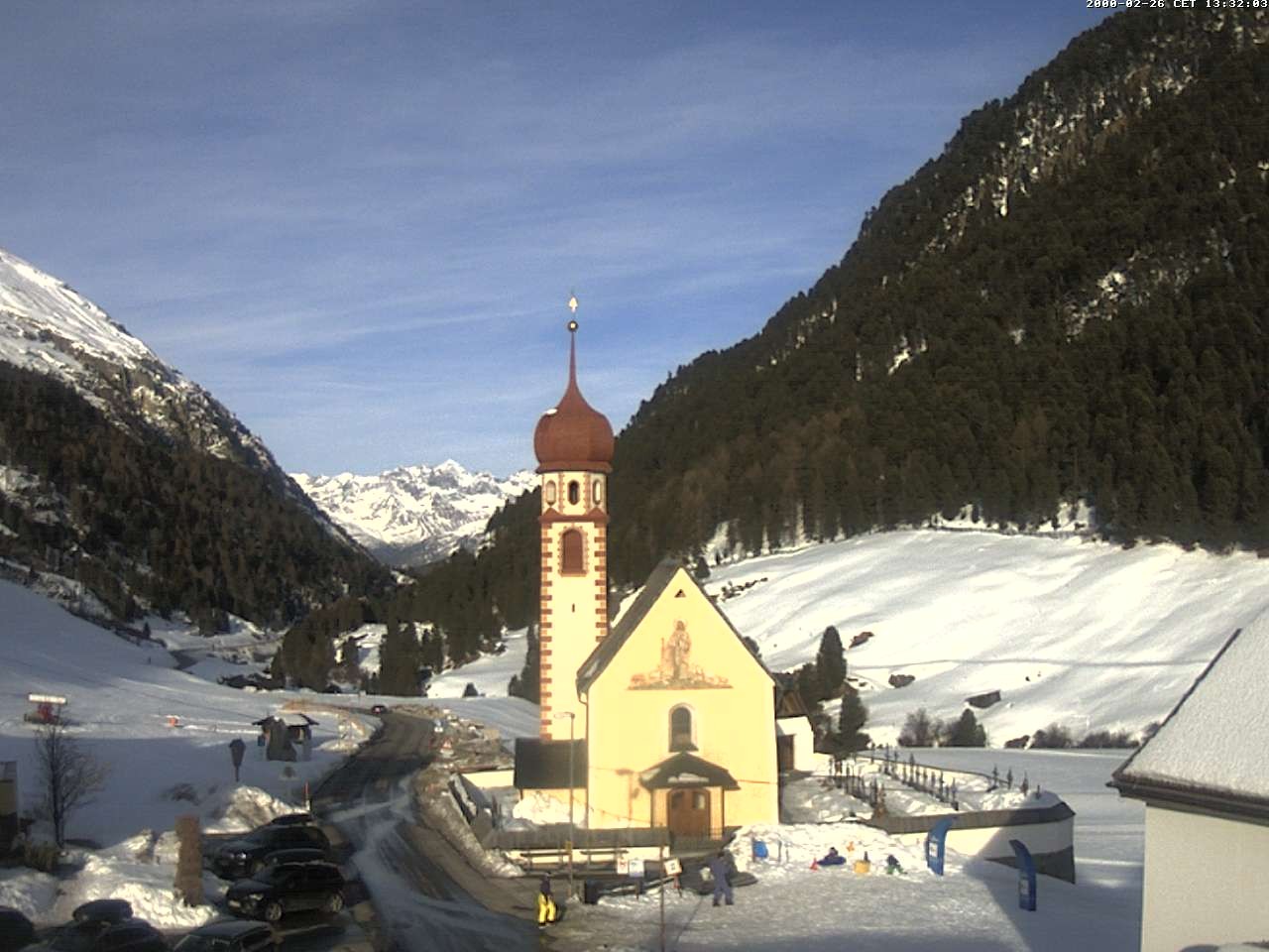 Archiviertes Webcam Bild: Vent - Blick zur Kirche und den Stubaier Alpen am 26 Feb 2026 um 14:45 Uhr 13:00