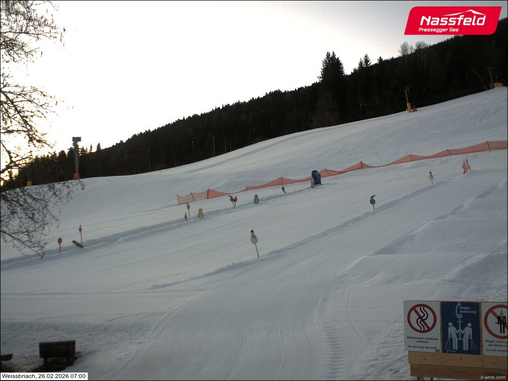Archived webcam image showing Ski resort Weißbriach on 26 Feb 2026 at 07:02 06:00