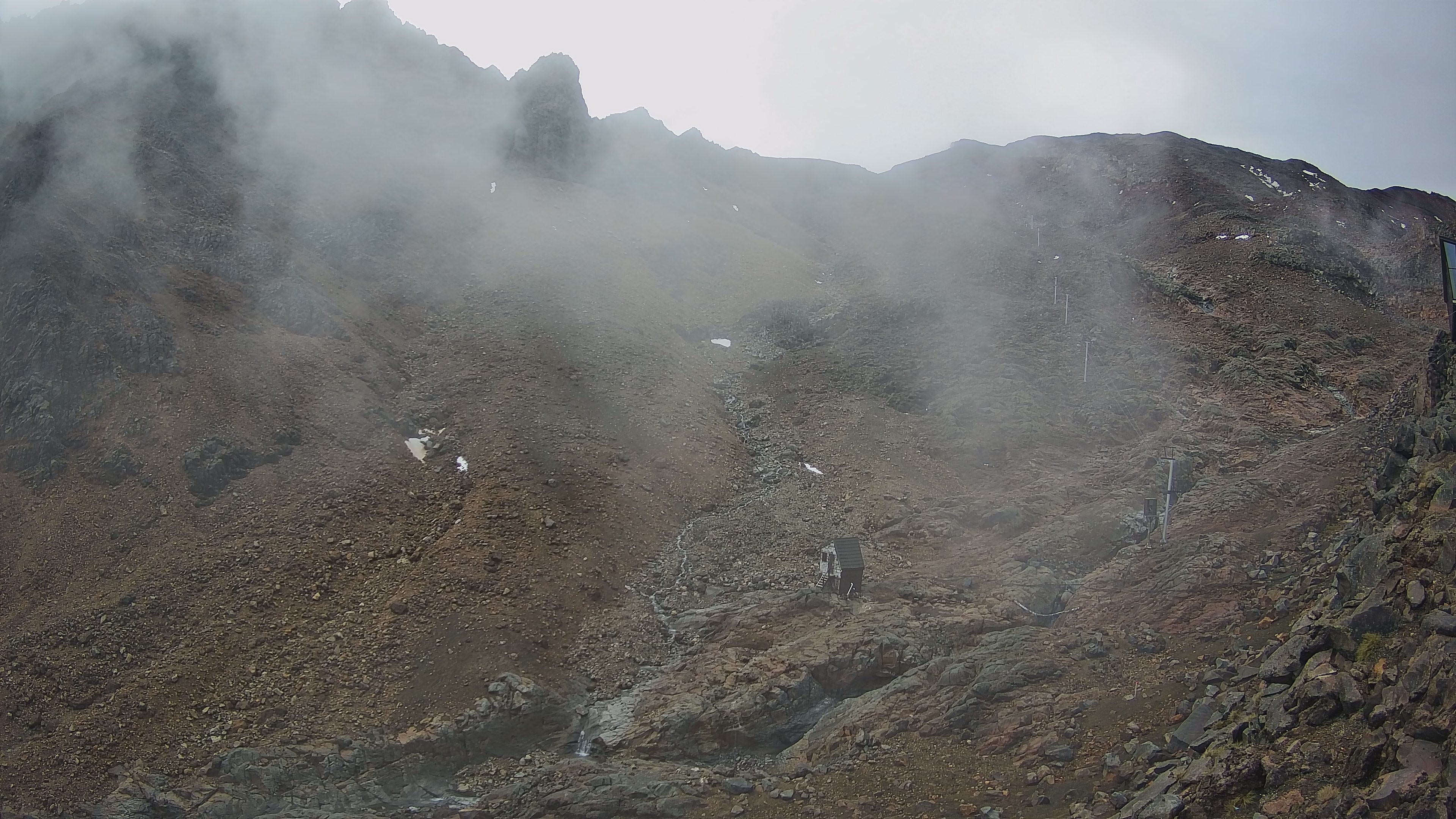 Ausblick auf den Berg Te Heuheu im Skigebiet Whakapapa. Die Webcam ist nahe der Bergstation des Sessellifts 'Waterfall Express Chair' angebracht.