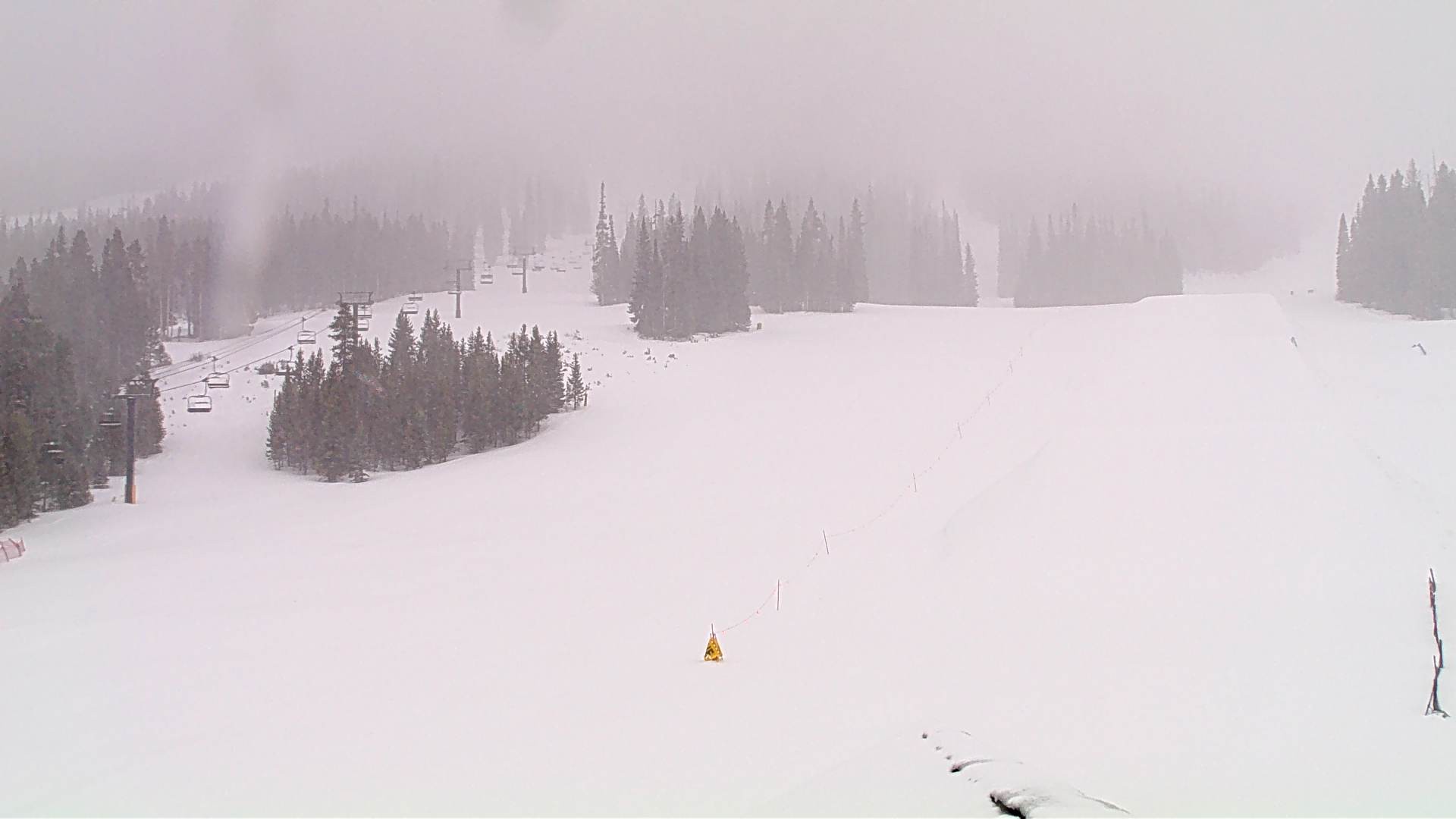 Die Webcam am Snoasis zeigt einen Teilbereich des Skigebiets Winter Park am Eskimo Express Lift.