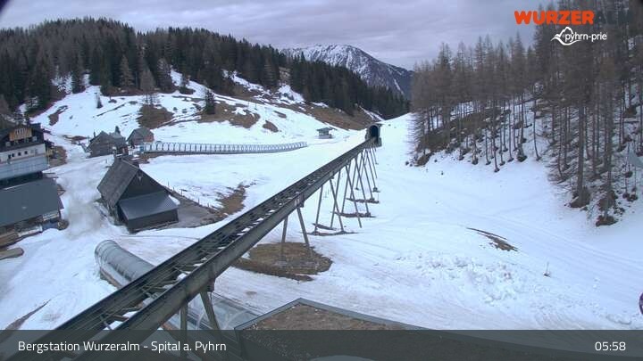Archiviertes Webcam Bild: Bergstation Wurzeralm am 12.04.2026 um 07:09 Uhr 07:00