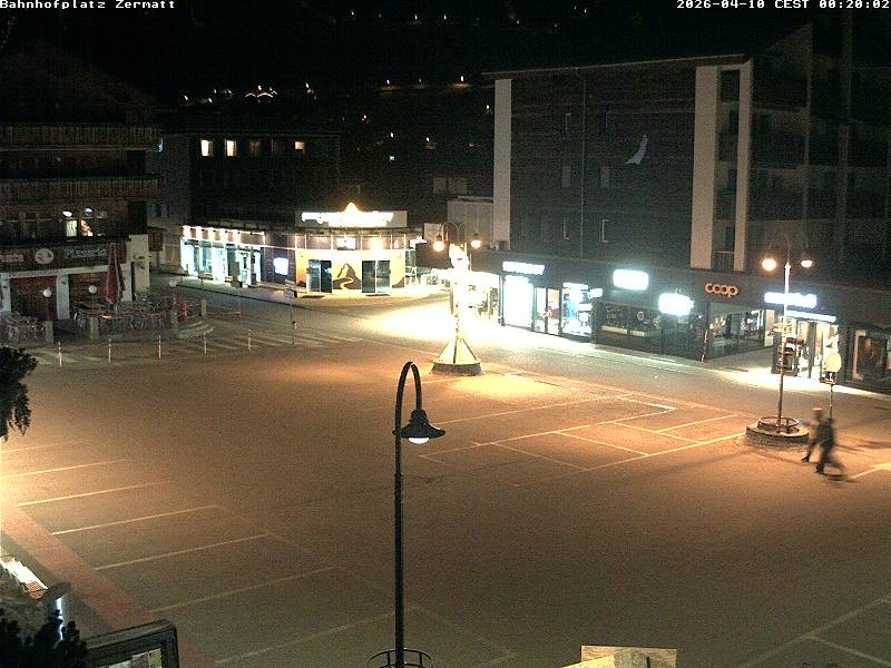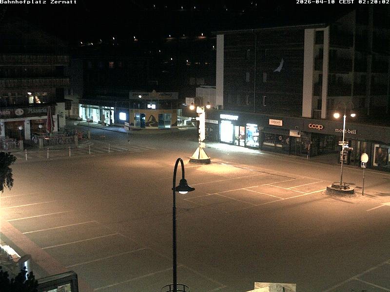 Archiviertes Webcam Bild: Zermatt: Bahnhofplatz am 10.04.2026 um 02:55 Uhr 02:00