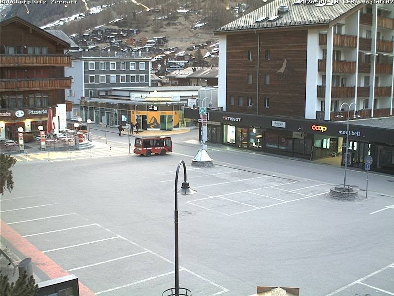 Archiviertes Webcam Bild: Zermatt: Bahnhofplatz am 10.04.2026 um 06:55 Uhr 06:00