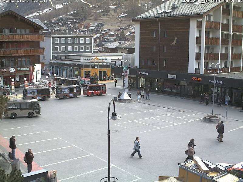Archiviertes Webcam Bild: Zermatt: Bahnhofplatz am 10.04.2026 um 08:55 Uhr 08:00