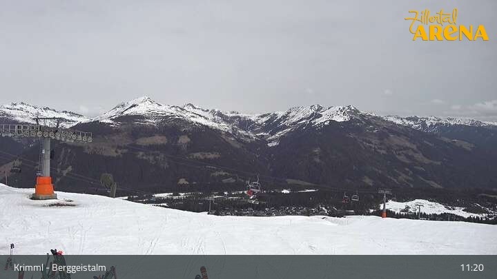 Archiviertes Webcam Bild: Zillertal Arena: Berggeistalm in Hochkrimml am 12.04.2026 um 11:58 Uhr 11:00