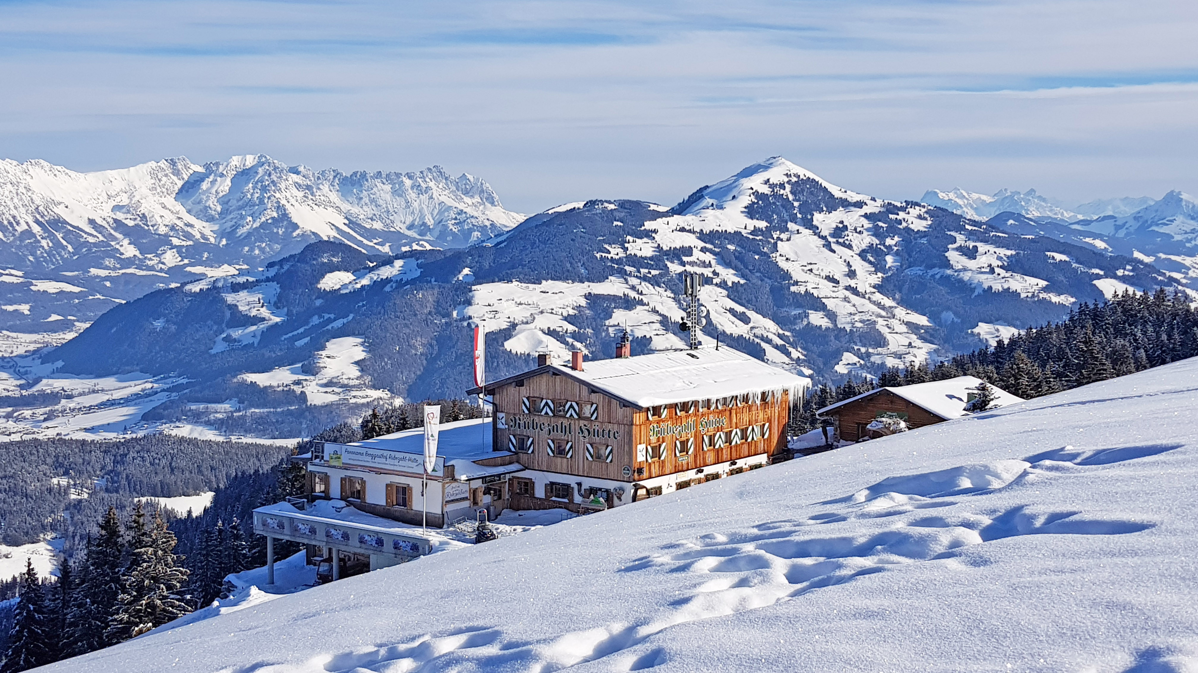 Gleich an der Bergstation befindet sich eine der urigsten Skihütten in der Wildschönau, die Rübezahlhütte, auf deren Sonnenterrasse bis zu 300 Gäste Platz finden.