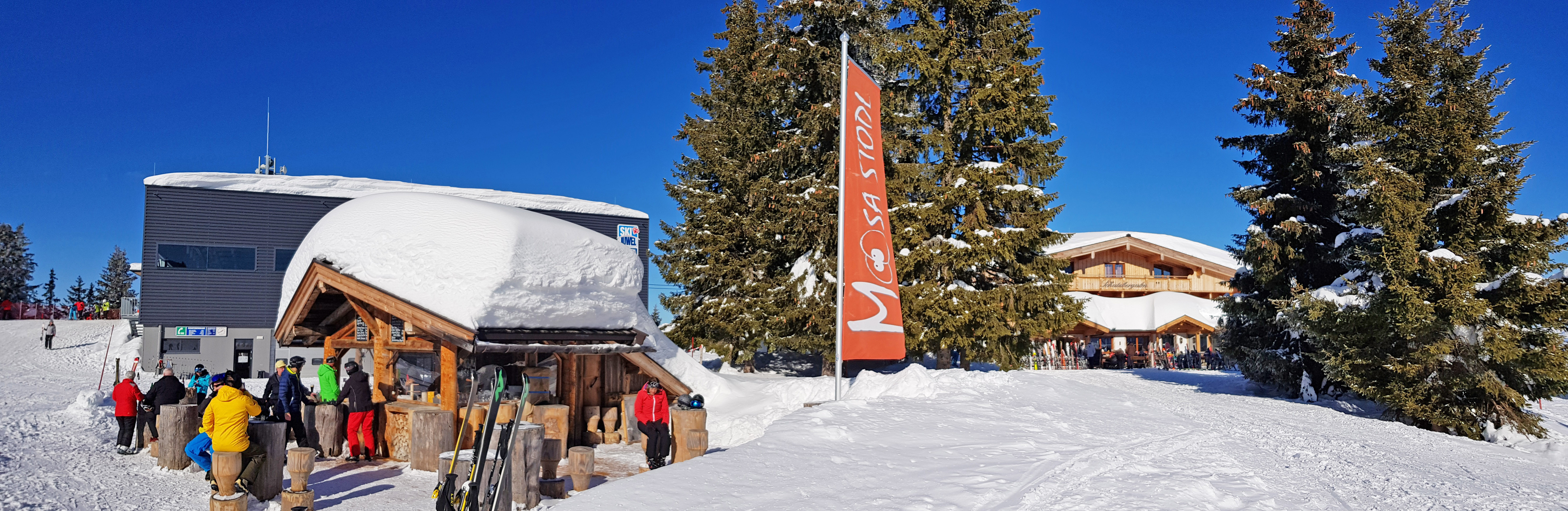 Eine gute Küche erwartet die Gäste auch auf der Schatzbergalm neben der Bergstation der Schatzbergbahn. Dieses Selbstbedienungs- und Bedienrestaurant verfügt über eine Sonnenterrasse mit traumhaftem Panorama. Der angrenzende Moosa-Stadl ist zudem ein kleiner Après-Ski-Treff mit gemütlichen Holzsitzgelegenheiten.