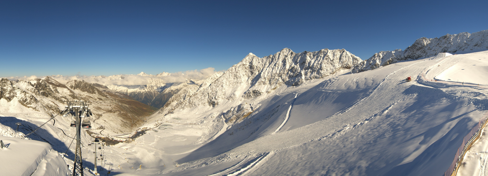 Nur noch 9 Tage, dann steigt wieder das alljährliche Weltcup-Opening am Rettenbachgletscher in Sölden. Genau zum richtigen Moment zeigt sich das hintere Ötztal von seiner winterlichen Seite. Nachdem bisher nur die oberen Pisten am Rettenbachgletscher in Betrieb waren, öffnen am Freitag, 14. Oktober, auch 3 Lifte und Bahnen am Tiefenbachgletscher (8EUB Tiefenbach, 6SK Seiterkar, SL Mutkogl). Knapp ein Meter Schnee liegt mittlerweile auf den Gletschern in Sölden - und die Saison läuft bereits auf Hochtouren.