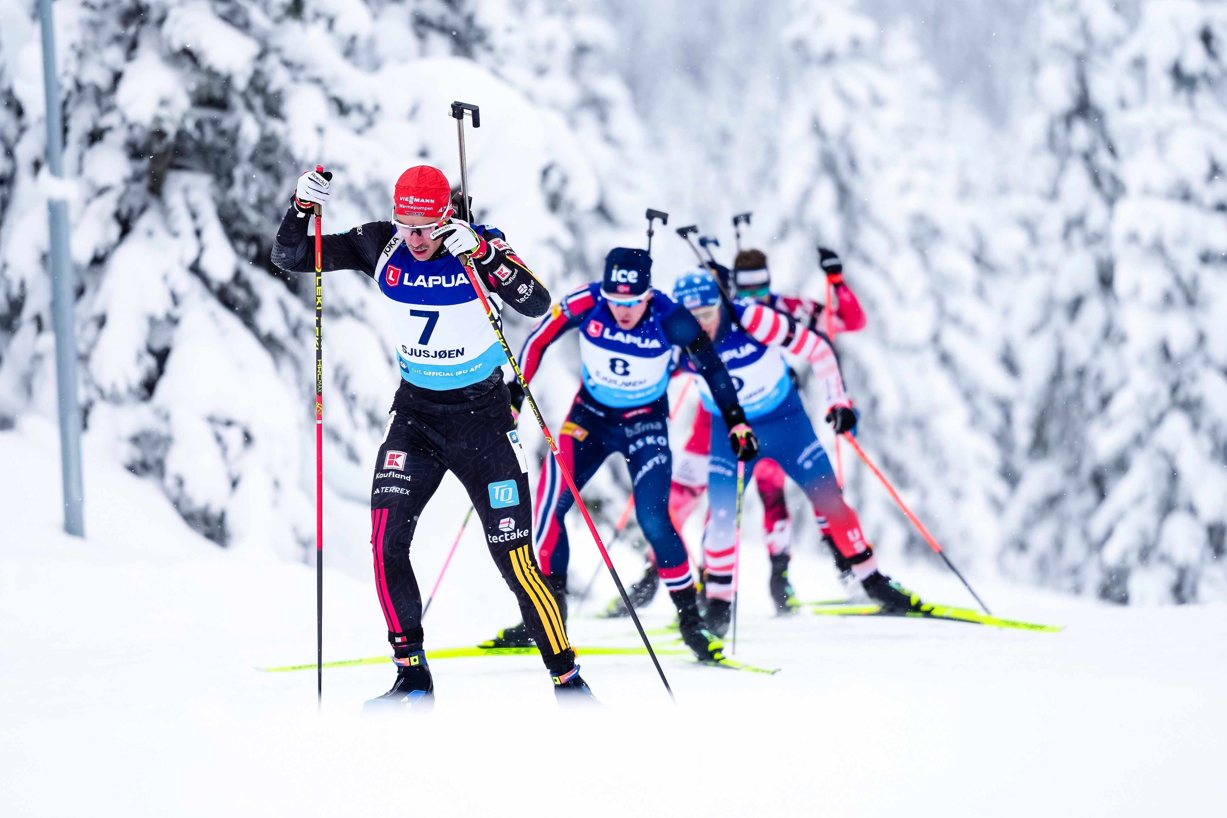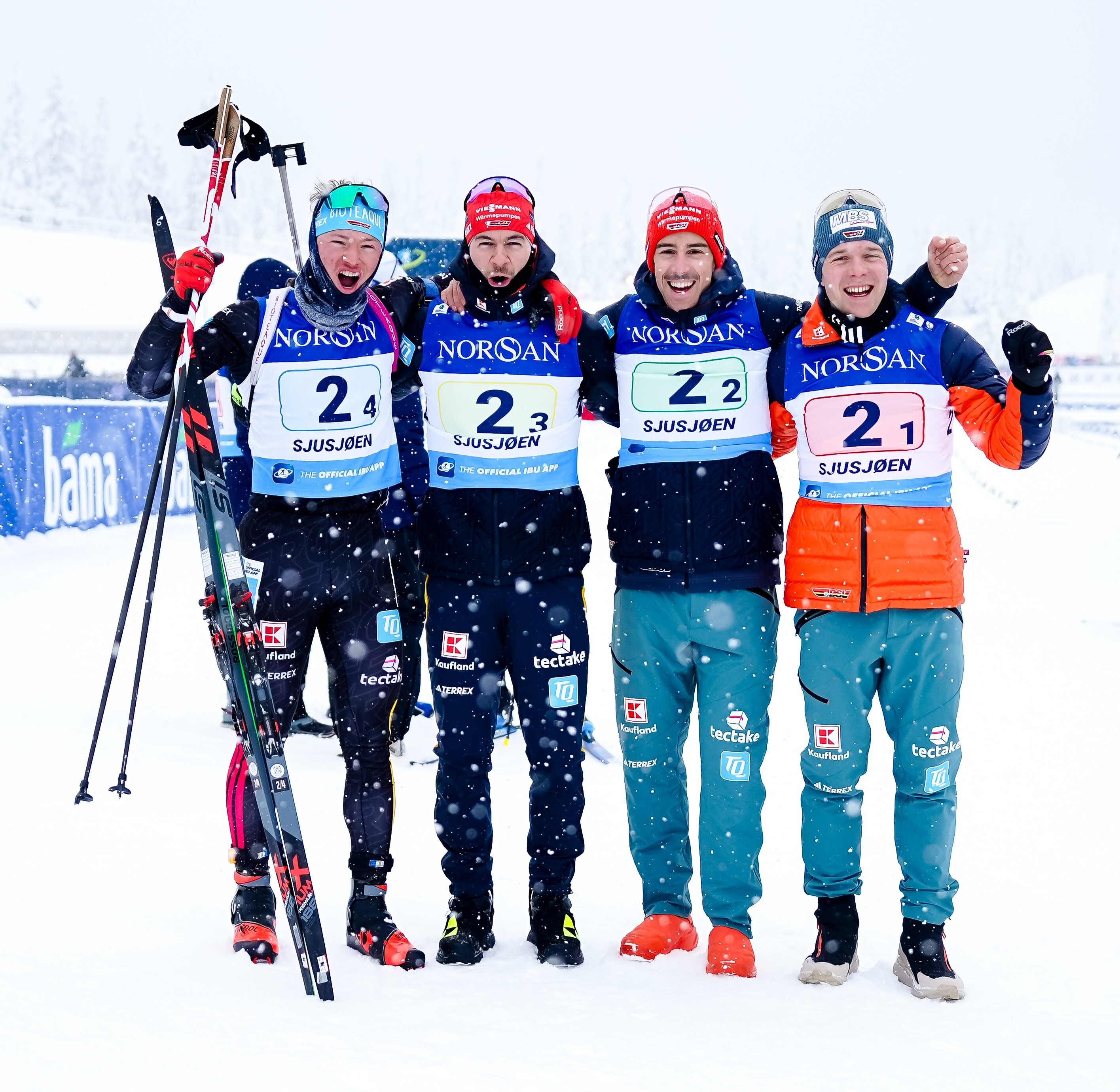 Spannende Herrenstaffel am Sonntag in Sjusjoen: Das deutsche Team mit Elias Seidl, Simon Kaiser, Danilo Riethmüller und Leonhard Pfund leistete sich zwar zwei Strafrunden und zehn Nachlader, konnte am Ende aber auf Platz 2 knapp hinter dem norwegischen Team ins Ziel kommen. Auch die anderen Nationen hatten Probleme am Schießstand und nur drei Länder kamen überhaupt ohne Strafrunde durch.