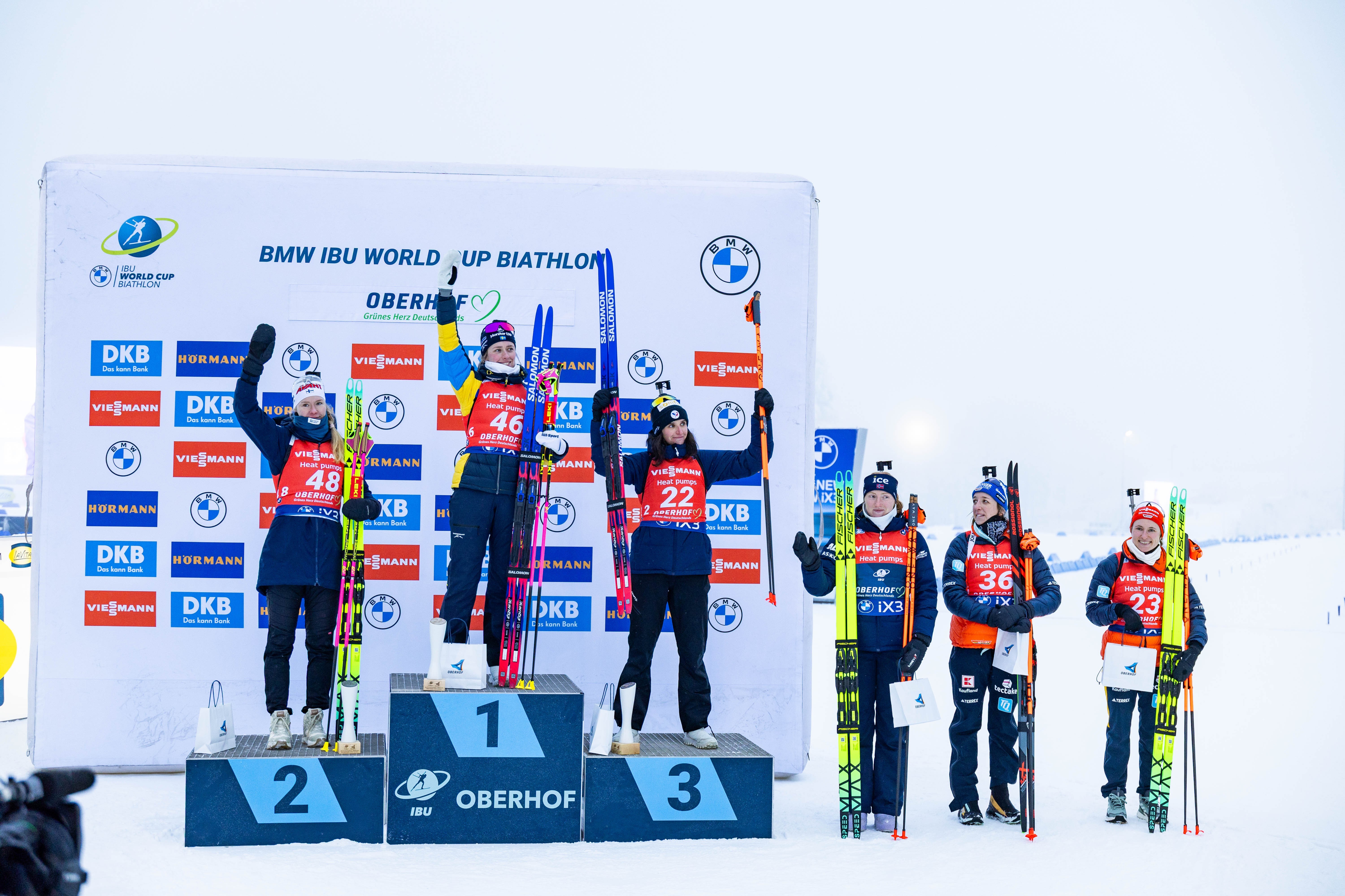 Sieg für Elvira Öberg und Schwester Hanna Öberg kann sich zudem Platz 3 freuen. © IBU|Heilwagen