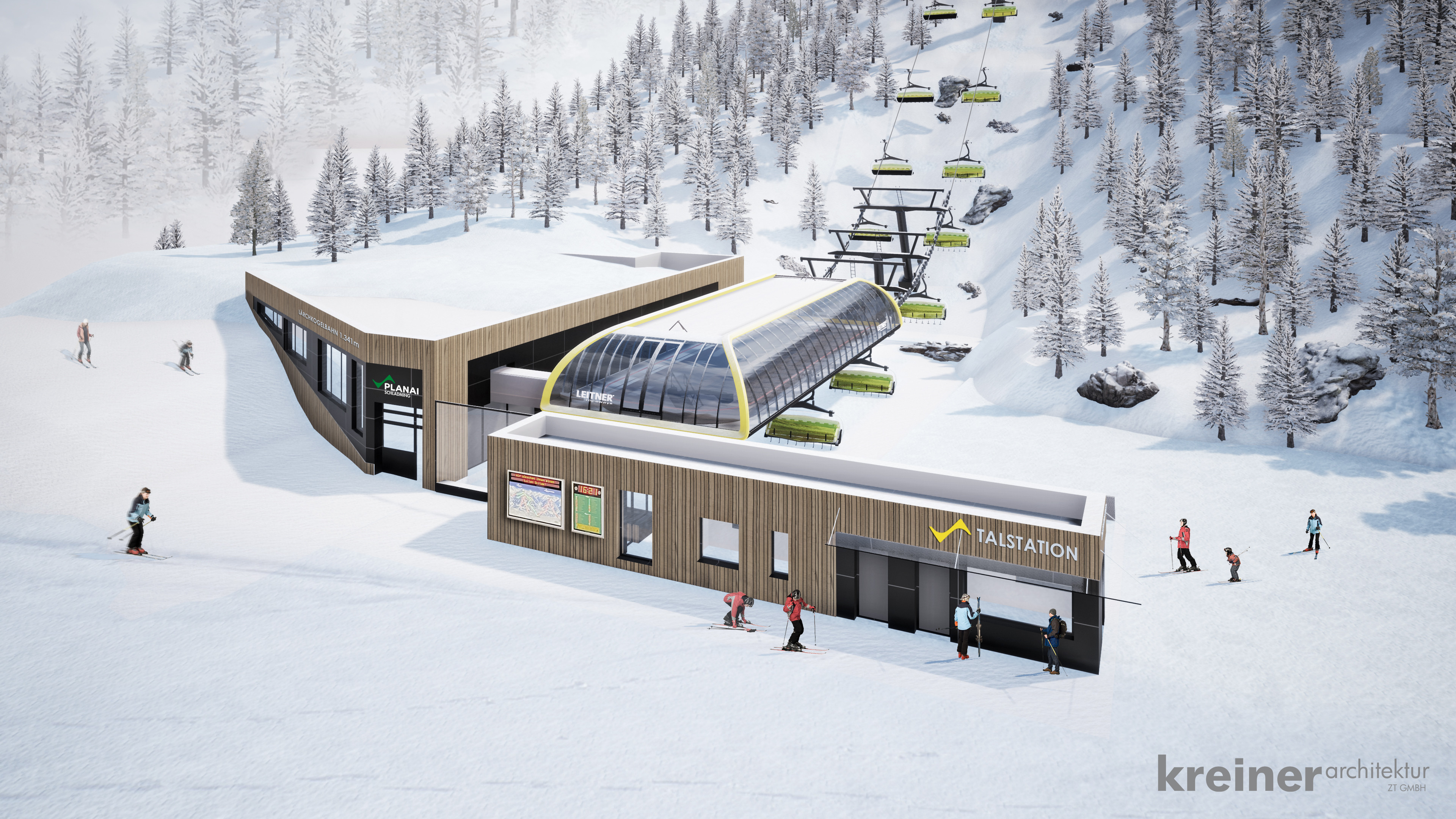 Die Lärchkogelbahn auf der Planai wird erneuert. © Planai-Bahnen/Visualisierung Kreiner Architektur