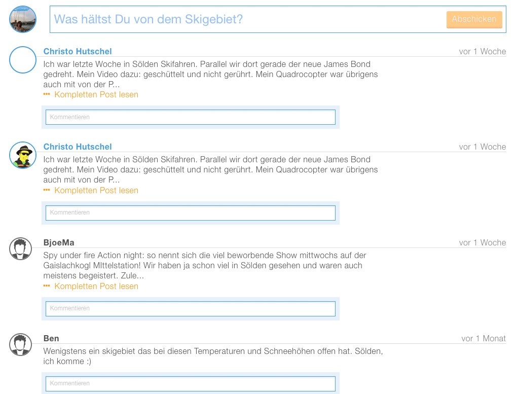 Das neue Skigebiete-Test.de bietet euch zahlreiche Möglichkeiten eure Meinung zu äußern und Beiträge zu kommentieren. So hat jedes Skigebiet ein eigenes Forum, dass ihr am Anfang der Seite entweder über den Reiter „Forum“ aufrufen könnt oder auch am Ende findet. Wie gefällt euch das Skigebiet oder habt ihr eine Frage an andere User? Da Posts auch von anderen Nutzern kommentiert werden können, ist hier eure Gelegenheit, mit ihnen zu diskutieren und Meinungen auszutauschen! Das gleiche gilt übrigens auch für Langlaufgebiete oder Unterkünfte. Registrieren müsst ihr euch für diese Funktion nicht.