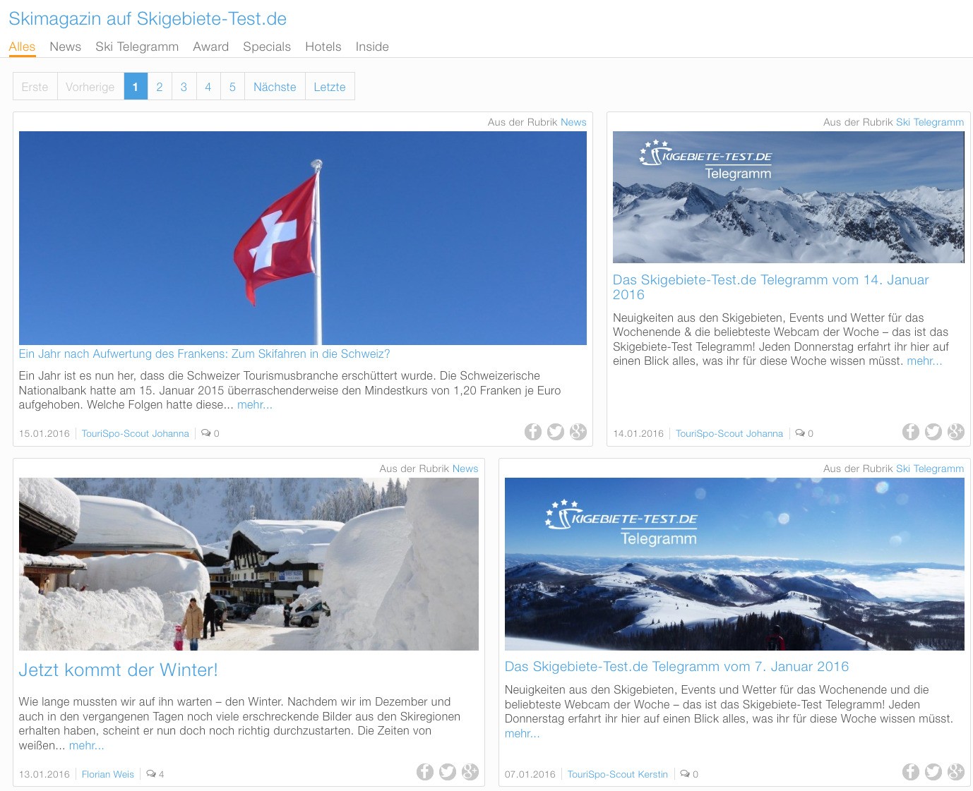 Im dritten Teil dieser Serie hatten wir euch bereits vorgestellt, dass ihr nun selbst zum Skigebiete-Tester werden und Berichte veröffentlichen könnt. Das ist aber nicht die einzige Möglichkeit für euch auf unserer Seite aktiv zu werden! Außerdem stellen wir in diesem Artikel unser neues Magazin und den Social Ticker vor.