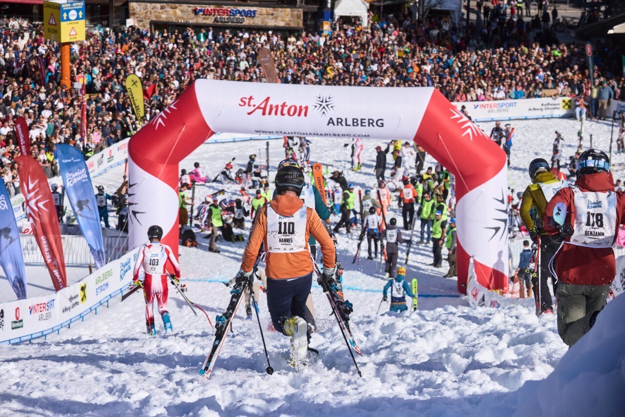 Jedes Jahr zieht das alpine Skirennen "Der Weisse Rausch" Teilnehmer und Zuschauer aus der ganzen Welt nach St. Anton am Arlberg. Wenn am Samstag, den 18. April 2026, bereits tagsüber auffällig viele Skifahrer in Rennanzügen unterwegs sind, weiß man: Heute ist es wieder soweit. Um 17 Uhr begeben sich dann 555 Skifahrer, Snowboarder und Telemarker an den Massenstart am Vallugagrat, um eine Strecke von 7,5 Kilometern Länge und 1346 Höhenmetern zurückzulegen.