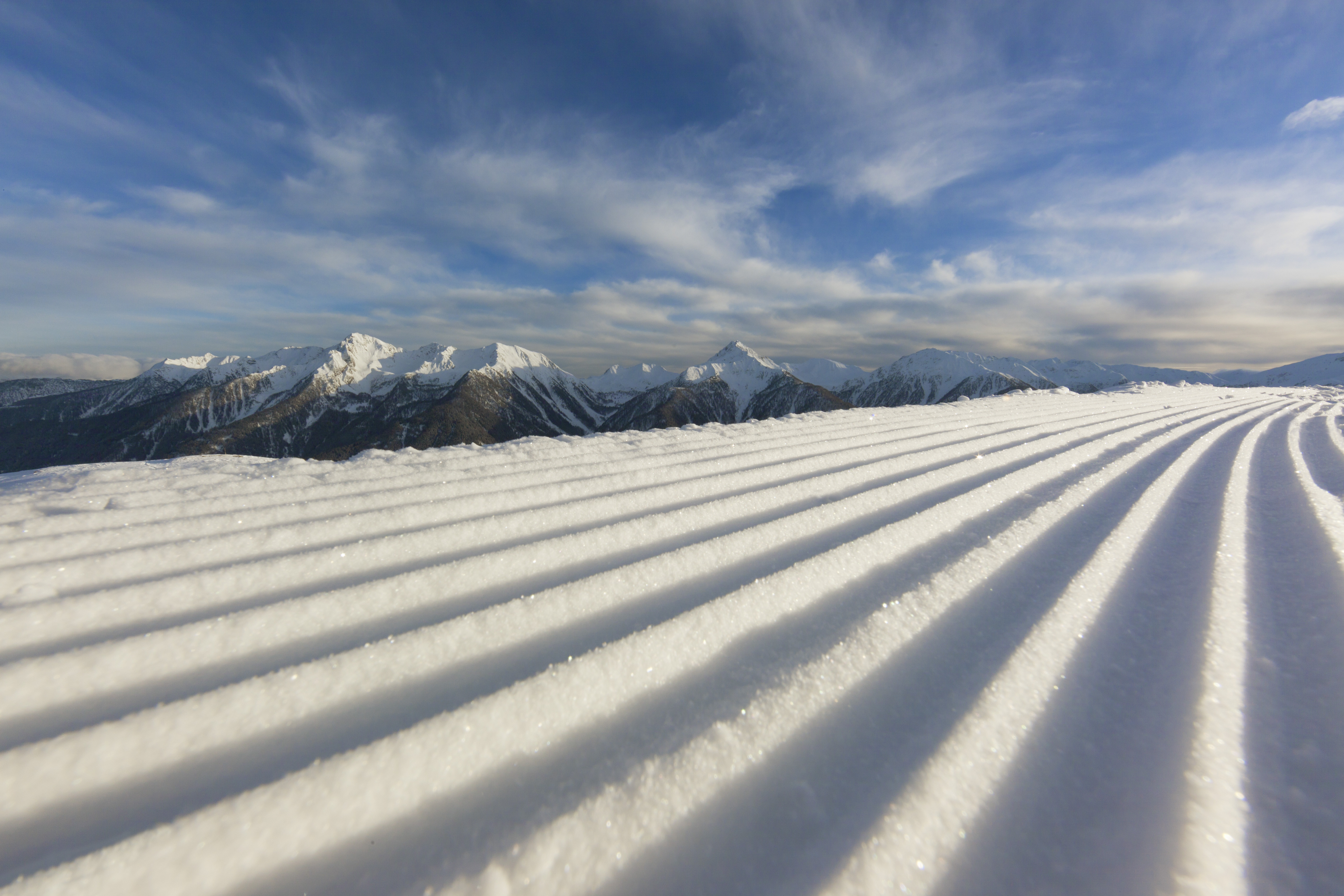 Mit der ersten Bahn auf den Schnalstaler Gletscher und die frisch präparierten Pisten hinuntersausen. Eintauchen in eine hochwinterliche Schneelandschaft von der Bergstation Grawand auf 3.212 Meter bis hinunter zur Talstation im Dorf Kurzras, das immer noch auf 2.011 Metern liegt. Perfekt für alle Ski- und Snowboard-Fans, denen der Winter gar nicht lang genug dauern kann.