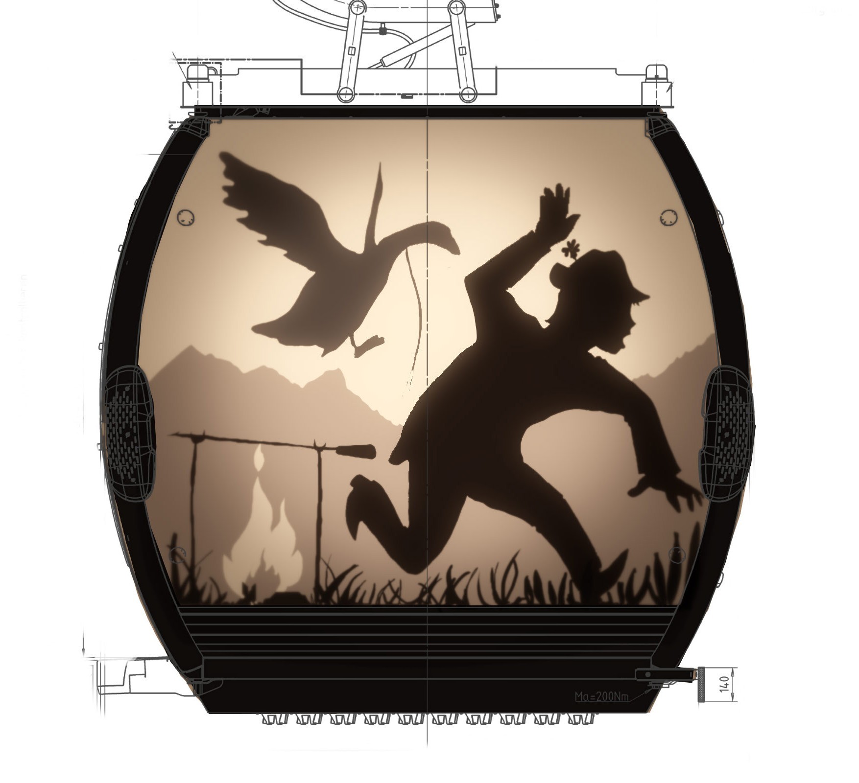 Jede zweite Gondel wird mit einem Auszug aus dem Märchen "Hans im Glück" beklebt. © Berg- und Skilift Hochsöll GmbH & CoKG