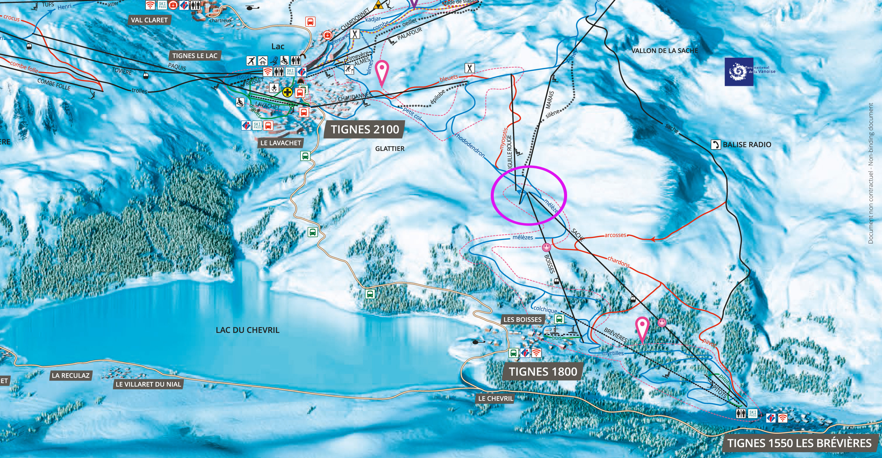 Großalarm am Mittwochnachmittag im französischen Tignes: Die Bergstation der Gondel La Sache (siehe Kreis im Bild oben) hatte bei Bauarbeiten Feuer gefangen. Innerhalb kürzester Zeit stand das Gebäude oberhalb des Dorfes Les Boisses und dem Lac du Chevril in Flammen.