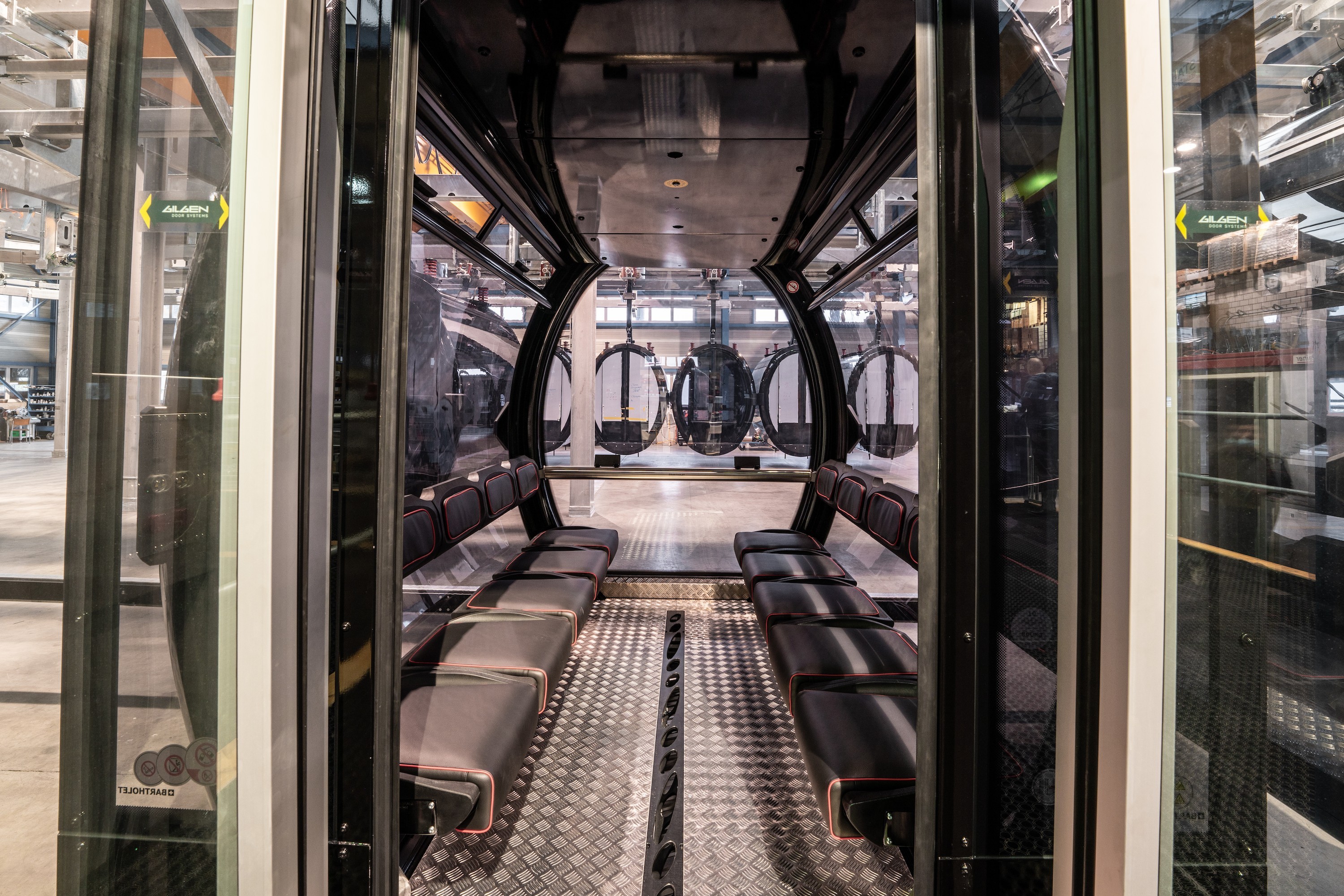 Insgesamt sollen auf der Strecke 120 Gondeln im Einsatz sein. Die Kabinen bieten Sitzplätze für jeweils zehn Personen, beziehungsweise fünf Personen mit Bike in der Sommersaison. Im Boden befinden sich Haltevorrichtungen für Ski und Snowboards. Darüber hinaus sind die Kabinen mit jeweils zwei Handyladestationen und einem Lüftungssystem ausgestattet, damit die Panoramascheiben bei der Fahrt nicht beschlagen. Für den ebenfalls geplanten Nachtbetrieb sollen die Gondeln zudem eine dezente Außenbeleuchtung bekommen.