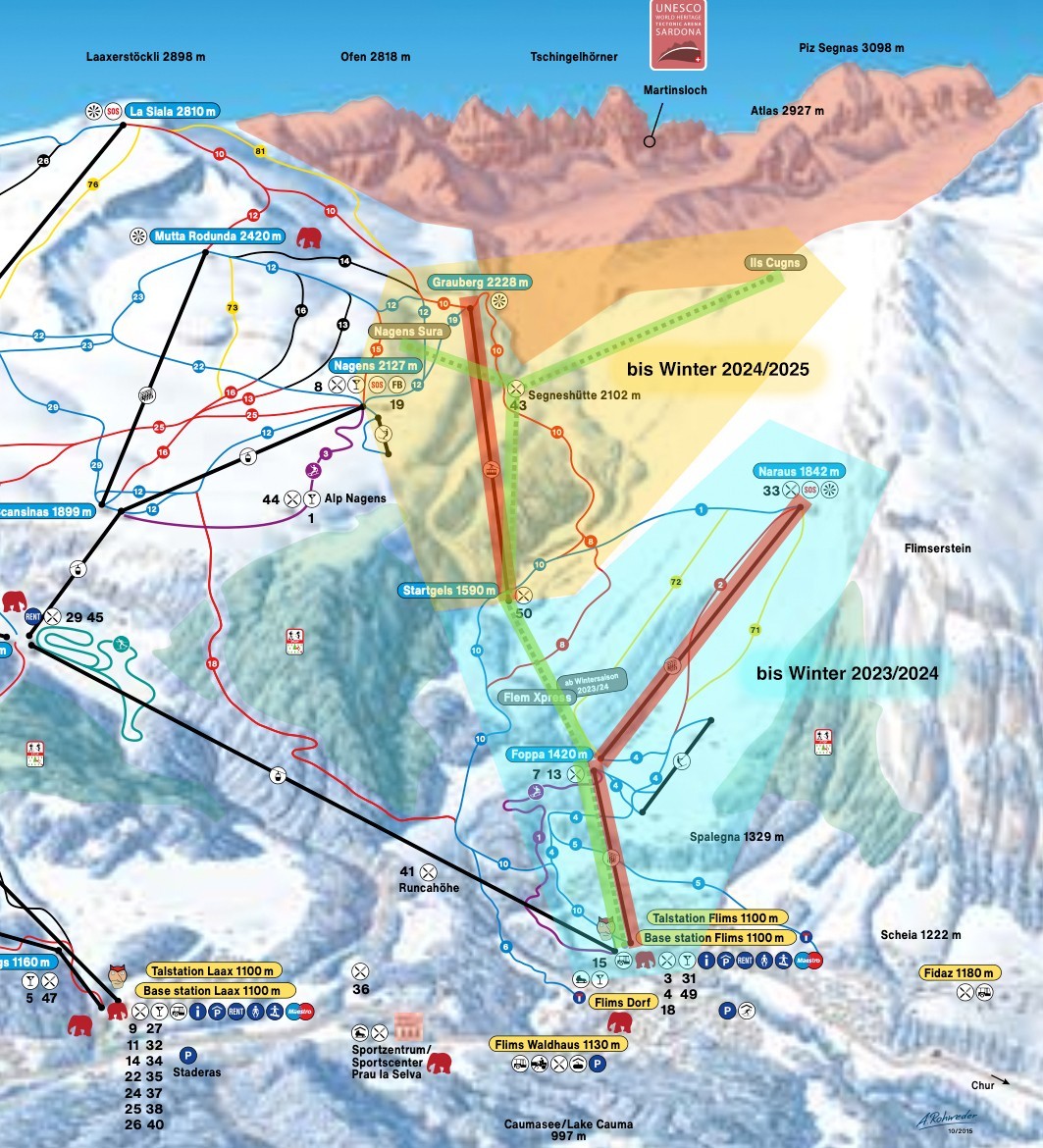 Im nächsten Schritt sollen dann bis zum Winter 2024/2025 die Stationen Segnes, Nagens Sura und Cassons fertiggestellt und die Pendelbahn Startgels-Grauberg rückgebaut werden. Über die Station Nagens Sura, die zwischen der ehemaligen Grauberg-Bergstation und dem Berghaus Nagens liegt, haben Skifahrer dann Zugang zu den Pisten im Gebiet Nagens und zu den weiteren Bergbahnen.
