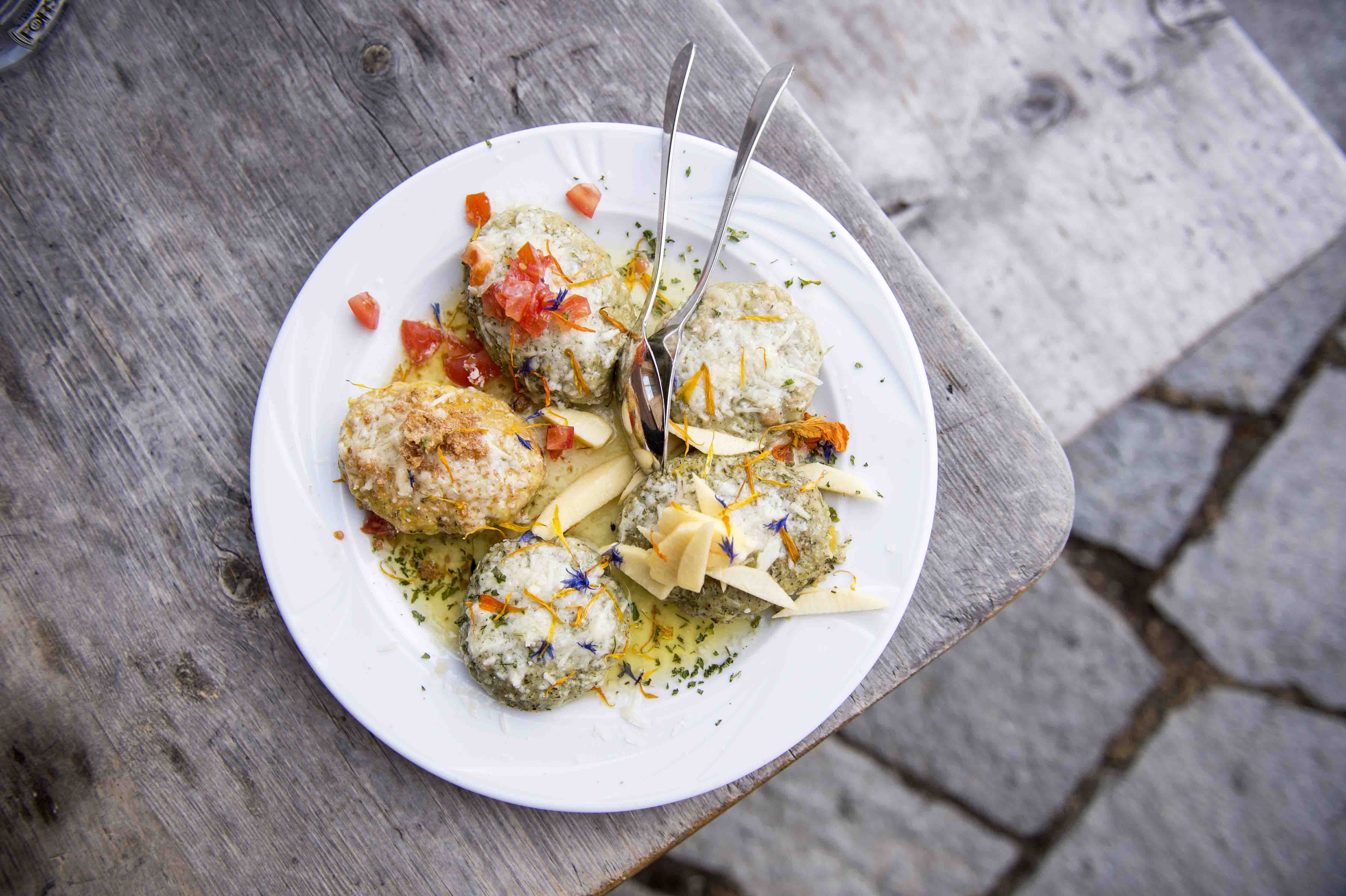 Traditionell geht es auf der Schwemmalm zu: In den ersten beiden März-Wochen hauchen die Wirte hier urigen Rezepten, wie den "Schworzplentenen Knedl" wieder Leben ein. In der gemütlichen Stube oder auf der großzügigen Sonnenterrasse werden Buchweizenknödel, Schöpsernes vom Ultner Schaf oder gebackenes Kalbsbries serviert, die man heute nur noch selten auf den Speisekarten von Restaurants findet. Alles getreu dem Motto: Wie in den guten, alten Zeiten!