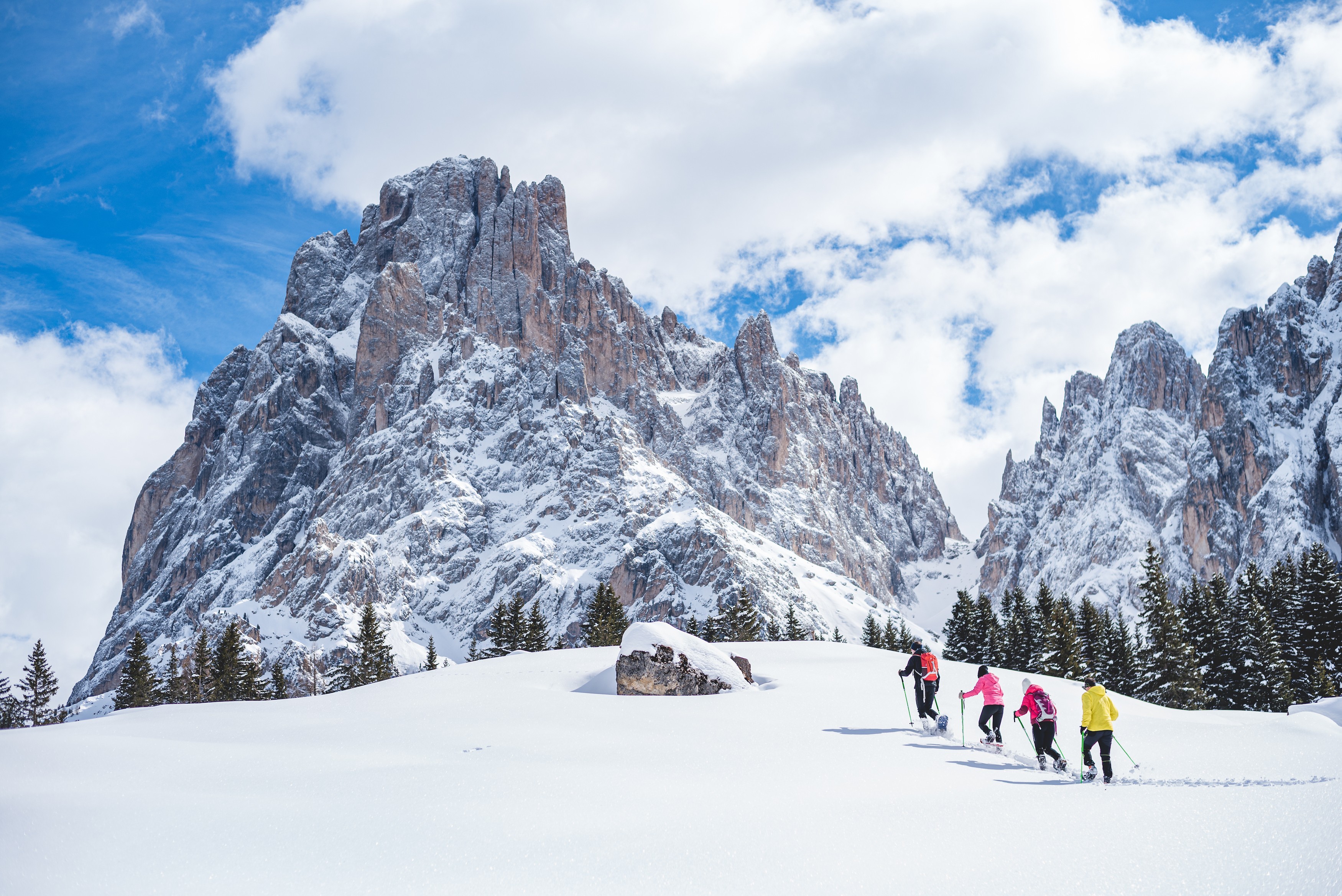 Einheimische Guides führen dich beim Schneeschuhwandern zu den schönsten Orten. © DOLOMITES Val Gardena