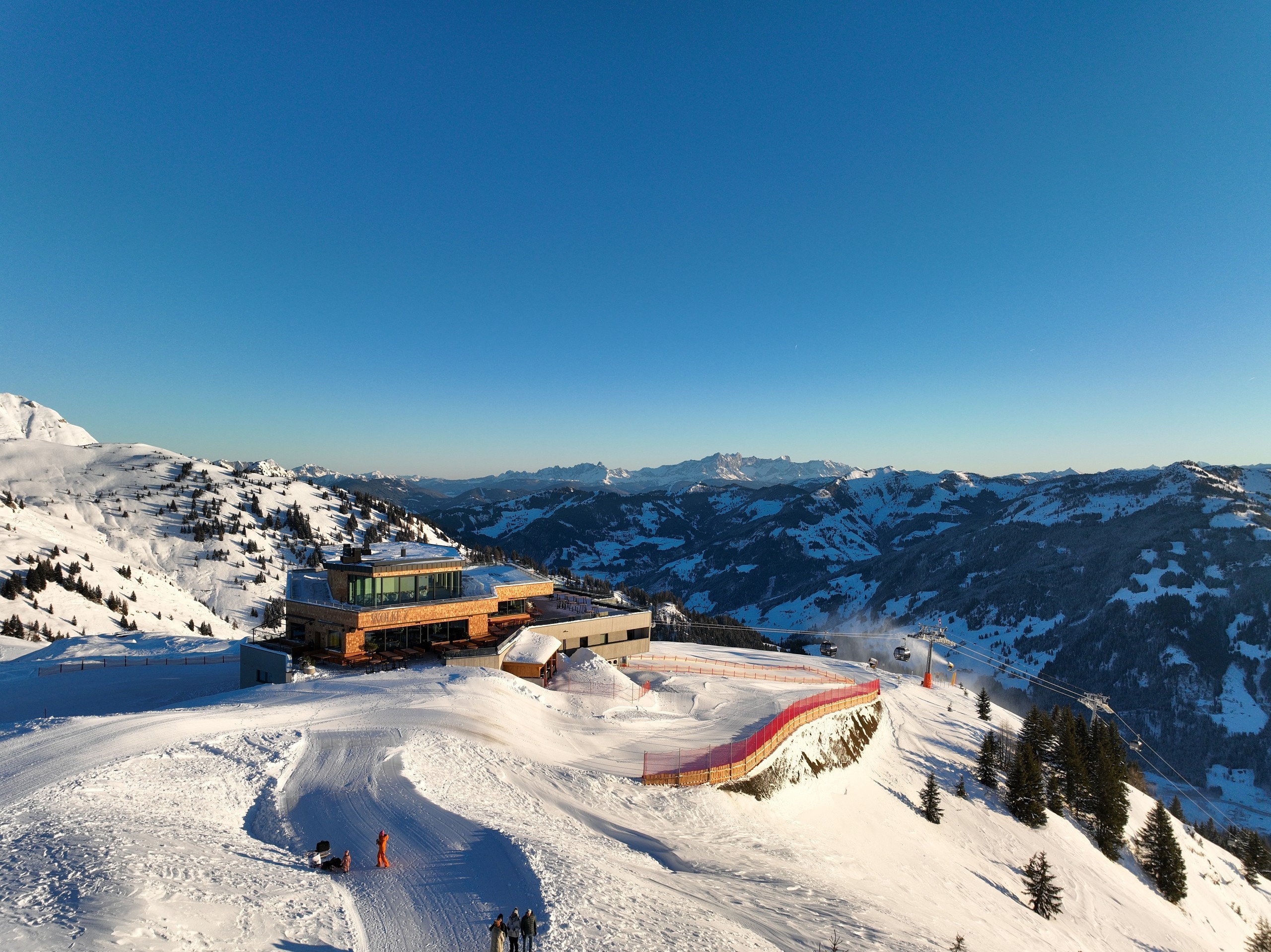 In rund 15 Minuten bringt dich die Bahn auf das Kieserl-Gipfelplateau auf 1.954 Metern, wo du entweder gleich das zweite neue Restaurant "Wolke 7" mit Panorama-Terrasse testen, oder die neu erschlossenen und herrlich schneesicheren Pisten, die bisher nur mit Skirouten und für Skitourengeher erreichbar waren, ausprobieren kannst.