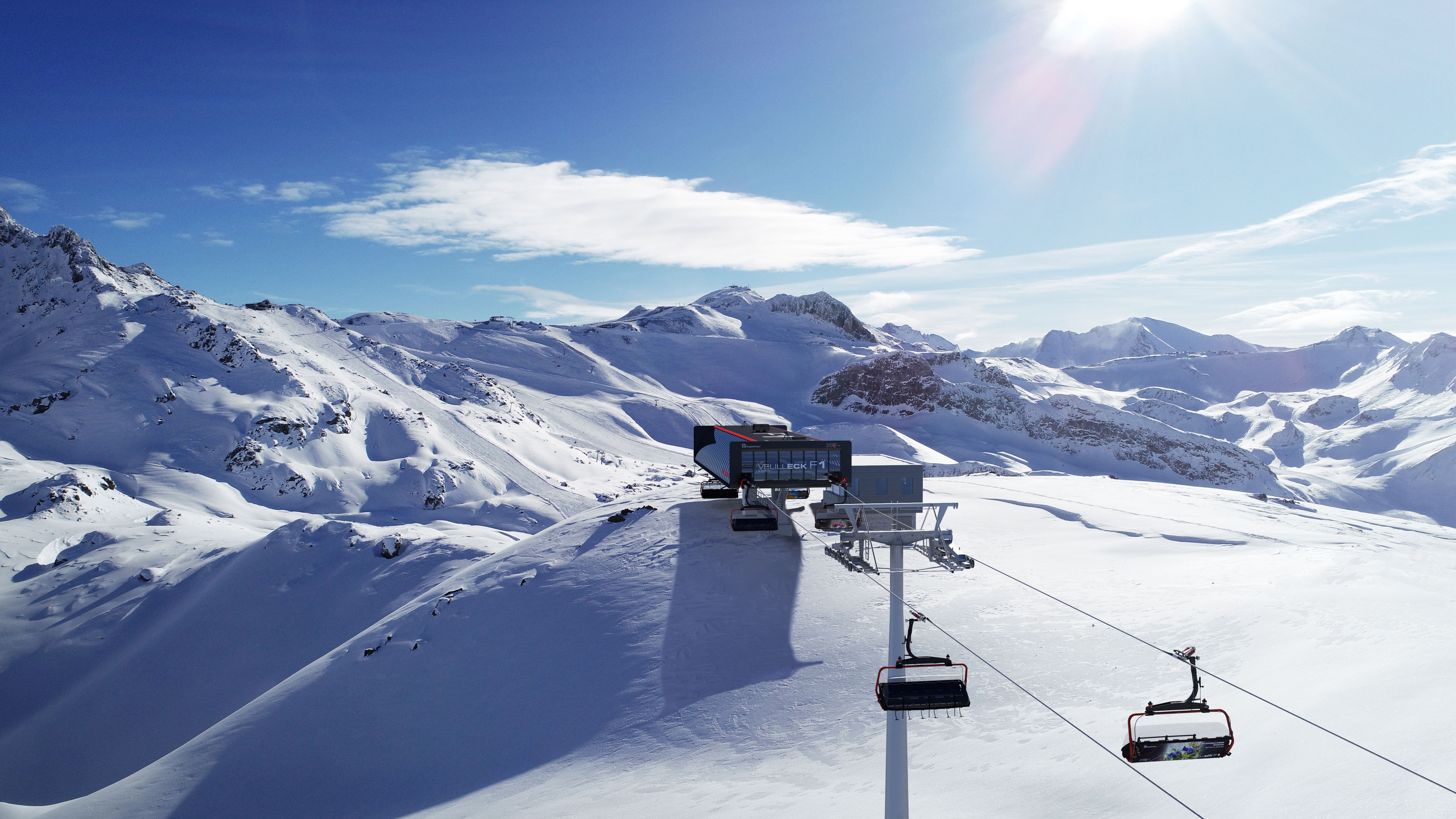 Mit einer Geschwindigkeit von 6 Metern pro Sekunde soll die neue 6er-Sesselbahn Velilleck F1 die schnellste Sesselbahn in der Silvretta Arena Ischgl/Samnaun werden. Sie führt auf den 2.620 Meter hochgelegenen Pardatschgrat und ist 1.353 Meter länger als der alte 2er-Velillecksessellift, der hier seit 1993 in Betrieb war, erstmals aber bereits 1978 auf der Strecke vom Höllboden zur Idalp zum Einsatz kam. Die Talstation der neuen Velilleckbahn bleibt unverändert am selben Standort direkt an der Skipiste Nr. 7 auf 2.048 Metern Seehöhe.