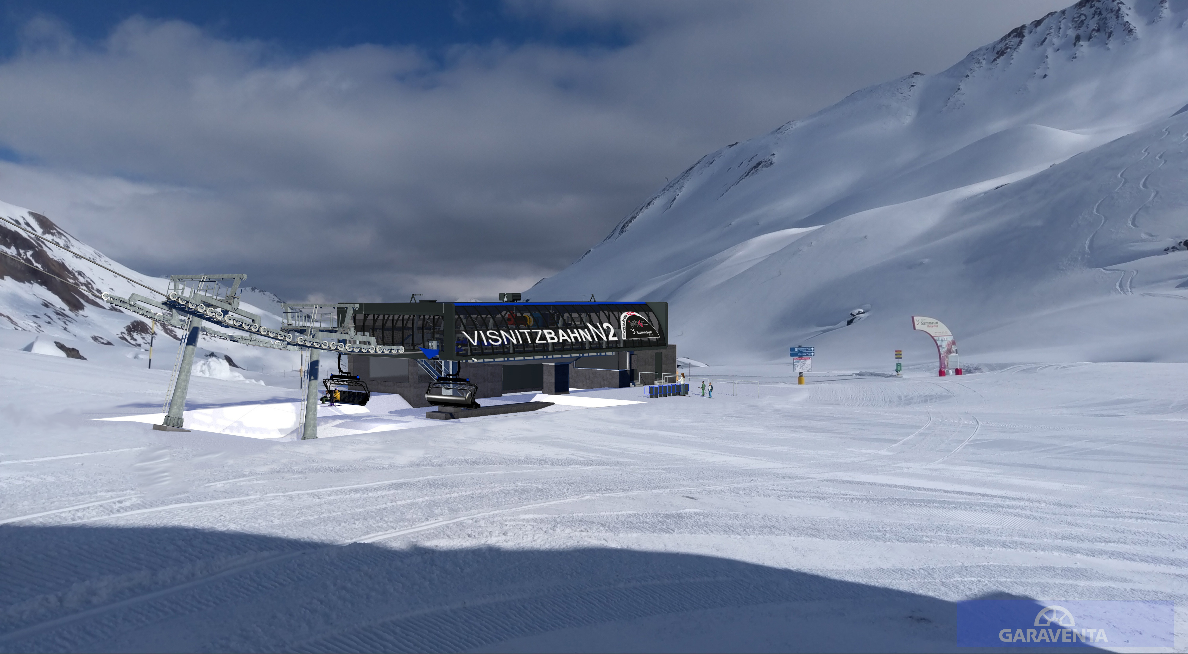 Mit der neuen Visnitzbahn N2 wird in Samnaun zum Winter 2019/2020 die erste 8er-Sesselbahn der Schweiz in Betrieb gehen. Sie soll über 13 Rundrohrstützen von der 2.261 Meter hochgelegenen Alp Trida in Richtung Visnitzkopf auf 2.633 Meter führen. Die Talstation wurde bereits im Sommer 2018 östlich des Bergrestaurants „Skihaus Alp Trida“ errichtet. Die ebenfalls bereits angelegte Skipiste 68b führt direkt zur neuen Talstation.
