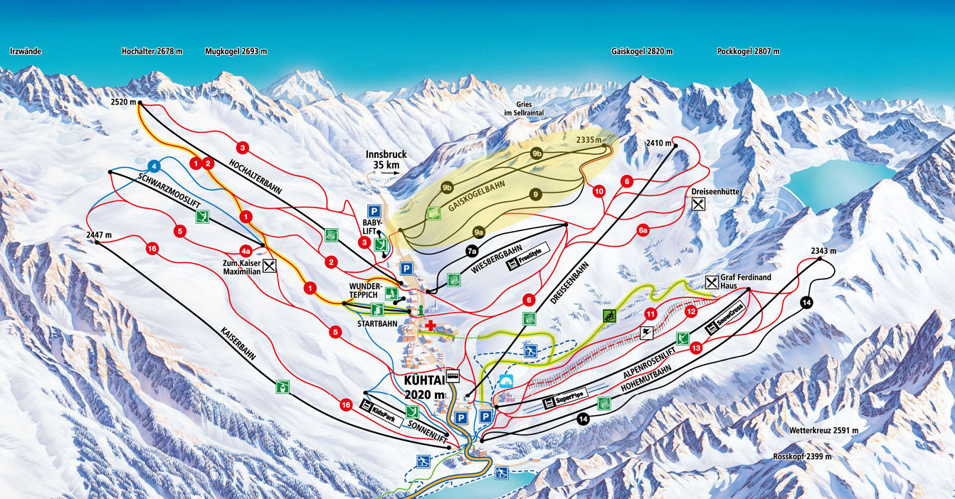 Doch die neue Gaiskogelbahn bietet nicht nur mehr Komfort, sondern auch mehr Abfahrtsvergnügen. Die Bergstation befindet sich nämlich 115 Meter oberhalb des alten Ausstiegs. Dadurch einsteht ein zusätzliches Pistenangebot von insgesamt einem Kilometer.