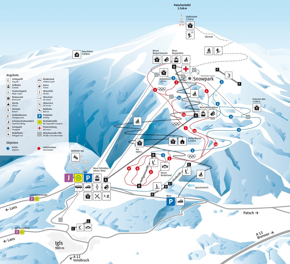 Der Patscherkofel in Igls bei Innsbruck ist als Austragungsort der Olympischen Winterspiele 1964 und 1976 weit über die Landesgrenzen hinaus bekannt. Mit dem Bau der neuen Patscherkofelbahn wird der Hausberg der Innsbrucker nun umfangreich modernisiert. Dank der neuen 10er-Einseilumlaufbahn aus dem Hause Doppelmayr wird es erstmalig möglich sein, alle Pisten am Patscherkofel mit nur einer Bahn zu erreichen. Die neue Patscherkofelbahn ist zudem auch hervorragend für den Sommerbetrieb ausgerichtet. Großer Wert wurde auch auf Barrierefreiheit gelegt. In den geräumigen 10er-Gondeln finden Kinderwägen und Rollstühle viel Platz. Die Kabinenbreite beträgt neu statt 2.436 mm nun 2.656 mm bei einer Höhe von 2.220 mm. Die Sitzfläche pro Person ist von 416 mm auf 460 mm gewachsen. Platz nimmt man auf gemütlichen Ledersitzen. Kostenloses WLAN wird's ebenfalls geben.