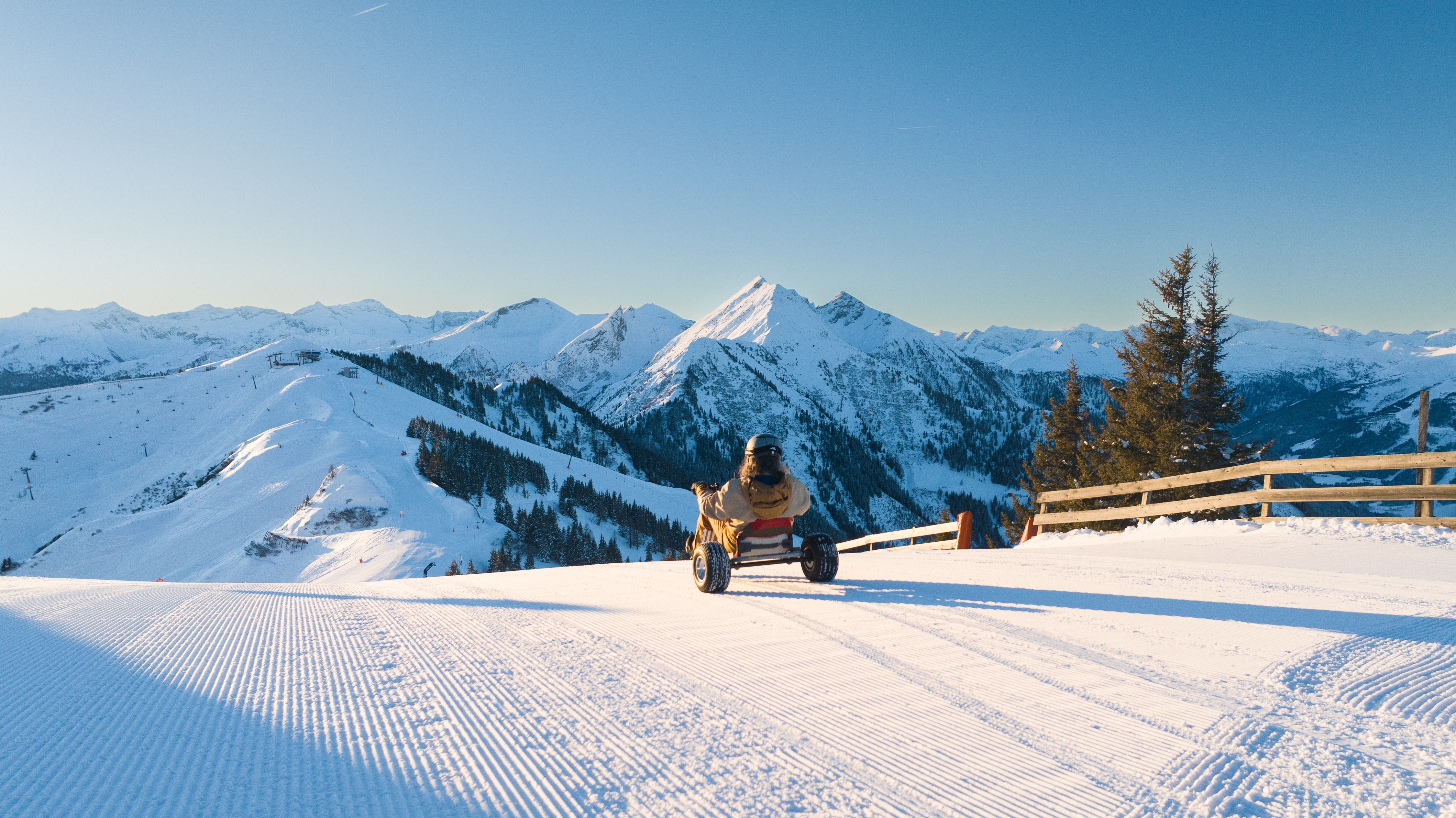 Mit technischen Anpassungen haben die Dorfgasteiner Bergbahnen die dreidrädrigen Fahrzeuge nun wintertauglich gemacht. Enstanden ist eine einzigartige Mischung aus Kartfahren, Rodeln und Driften. Die intuitive Steuerung macht das Erlebnis für alle zugänglich, während der tiefe Schwerpunkt für Stabilität sorgt. Wer es wagt, kann mit gekonnten Drifts durch die Kurven gleiten und dabei pures Motorsport-Feeling genießen.