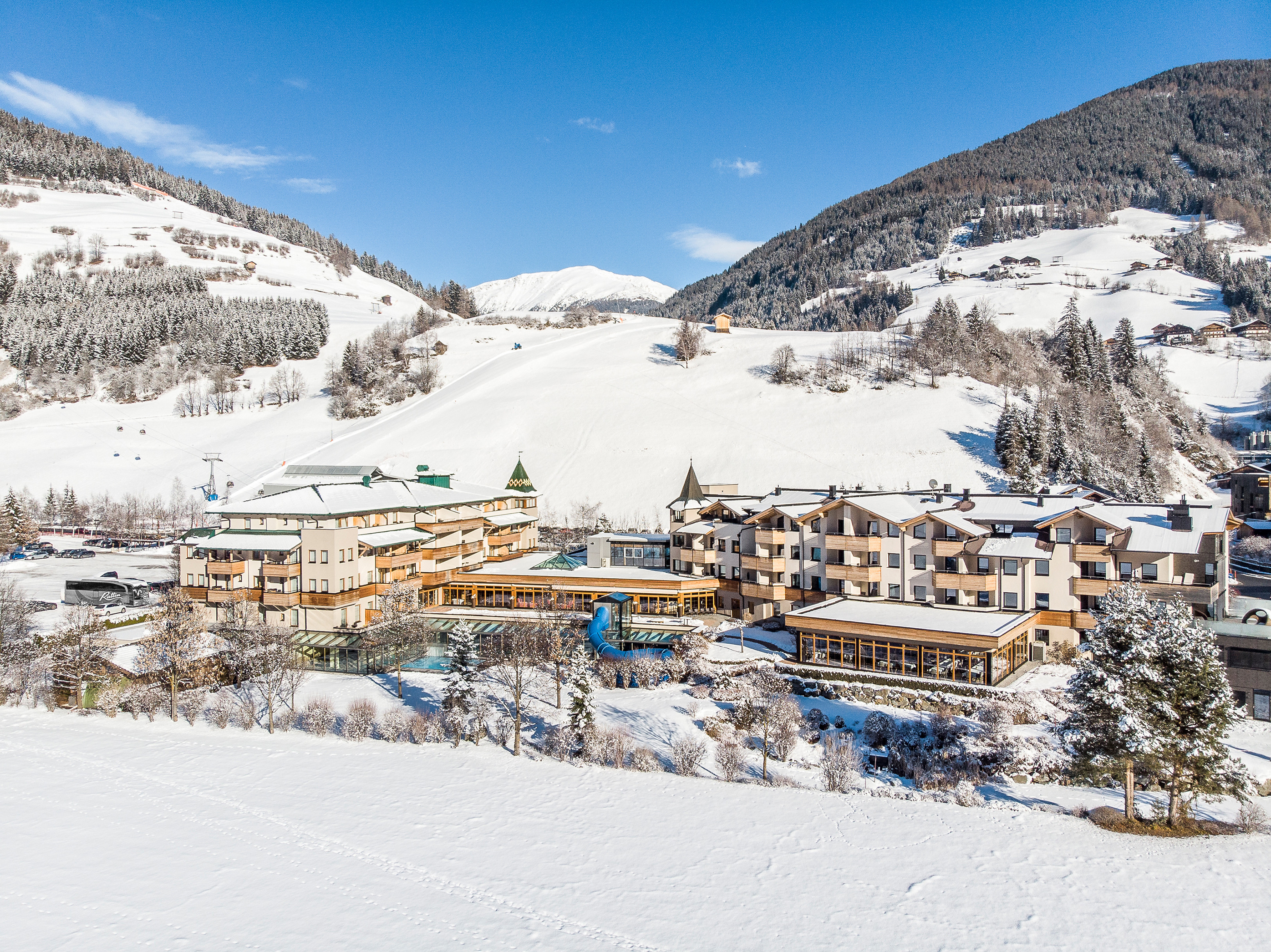 In der Dolomiten Residenz****s Sporthotel Sillian im Hochpustertal lassen sich Erholung und Genuss perfekt mit aktivem Familienurlaub verbinden. Das erste Familien-Wellnesshotel Osttirols verfügt über ein umfangreiches Wellness- und Spa-Angebot mit Pool- und Saunalandschaft, geräumige Zimmer und Suiten, eine Vielzahl an Sport- und Freizeitmöglichkeiten sowie ein einzigartiges Angebot für Familien mit professioneller Kinderbetreuung, Teenager-Programm und eigenem Kinderpool mit Wasserrutsche.