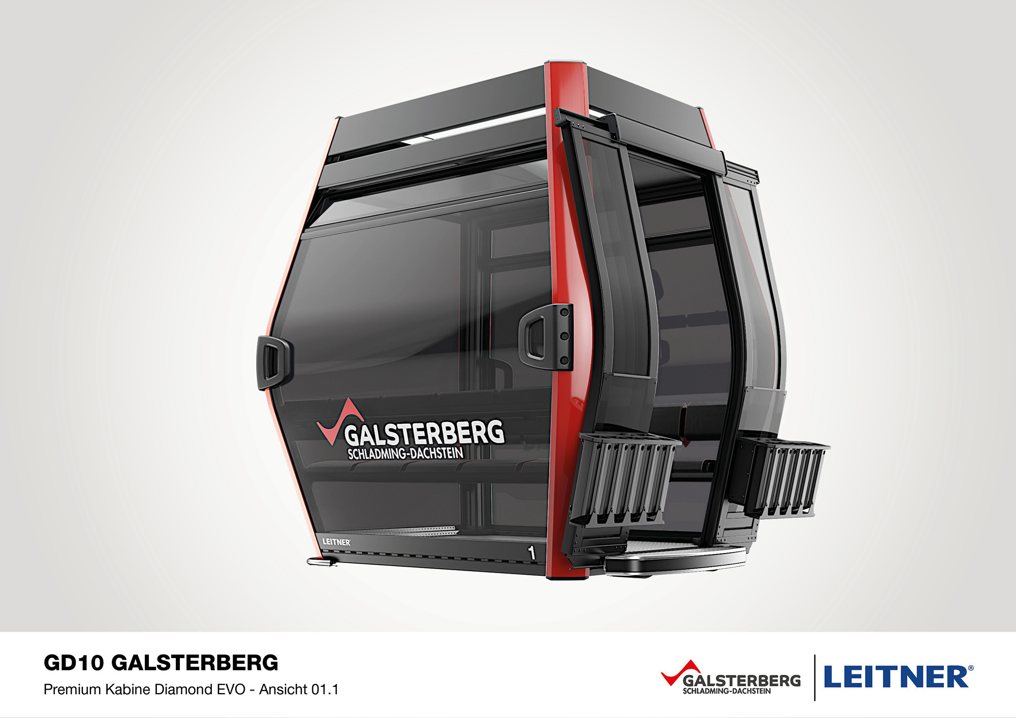 Die neuen 10er-Kabinen „Diamond EVO XLINE Deep“ bieten den Fahrgästen mit gepolsterten Einzelsitzen und viel Beinfreiheit nicht nur mehr Komfort, sondern ermöglichen dank ihrer großzügigen Glasfronten auch einen 360°-Panoramablick während der Fahrt.