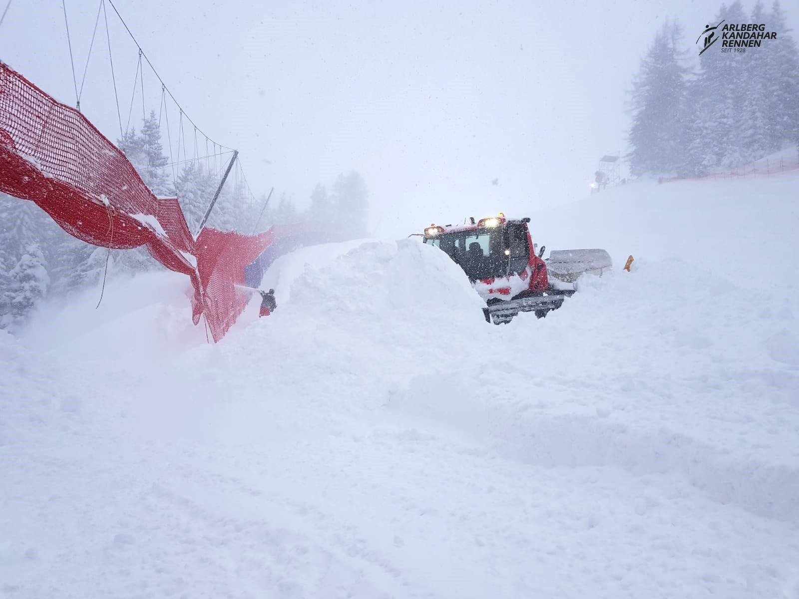 Seit Dienstag schneit es heftig am Arlberg. 140 Zentimeter Neuschnee sind innerhalb von drei Tagen gefallen und auch am Rennwochenende sollen noch einmal 70 Zentimeter hinzu kommen. Keine Chance für die Organisatoren, die bis zum Schluss gegen den Neuschnee gekämpft und rund 120.000 Kubikmeter Schnee aus der Rennstrecke entfernt haben. Neben den Rennen wird auch das große Rahmenprogramm abgesagt. Bereits gekaufte Tickets können zurückgegeben werden.