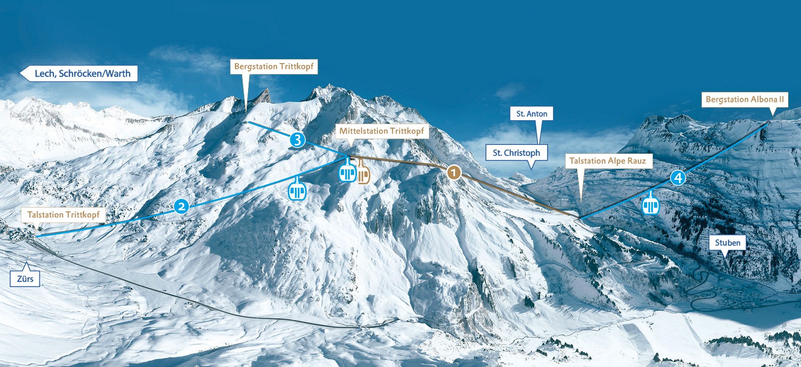Neben der Flexenbahn werden insgesamt drei weitere Gondelbahnen im Sommer 2016 gebaut. Das Investitionsvolumen liegt bei 45 Millionen Euro. In Zürs entstehen die Trittkopfbahn I und II. Über die erste Sektion der Trittkopfbahn geht es zur Talstation der neuen Verbindungsbahn. Die zweite Sektion erhöht den Komfort bei der Auffahrt zum Trittkopf in Zürs. Im Gebiet von St. Anton  entsteht zusätzlich die 10-erGondelbahn Albona II. Von der Alpe Rauz erreicht man dann bequem das bei Freeridern beliebte Albonagebiet in Stuben am Arlberg. Neben der Vergrößerung der Skigebiete und einer Komfortsteigerung erhoffen sich die Liftbetreiber auch eine Entlastung der Umwelt. Alleine 120 Skibusfahrten zwischen der Alpe Rauz und Zürs gehören dann der Vergangenheit an. Neue Pisten werden keine erschlossen, die zukünftigen Bahnen dienen nur der Verbindung der Skigebiete.