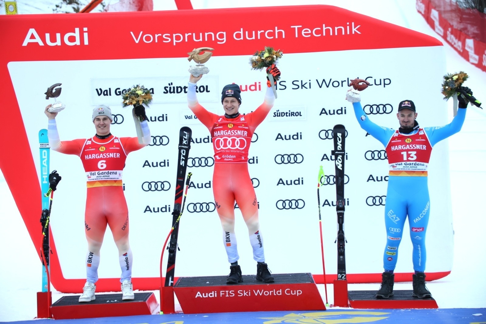 Vertauschte Rollen: Während am Donnerstag noch Marco Odermatt (SUI) in der ersten Gröden-Abfahrt ganz oben stand und sich Franjo von Allmen (SUI) mit Platz 2 begnügen musste, hat sich das Blatt am Samstag gedreht. Heute setzte sich von Allmen vor seinem Teamkollegen an die Spitze und holte sich mit der absoluten Bestzeit in der Geschichte der Saslong den heutigen Sieg. Dritter wurde Lokalmatador Florian Schieder (ITA).