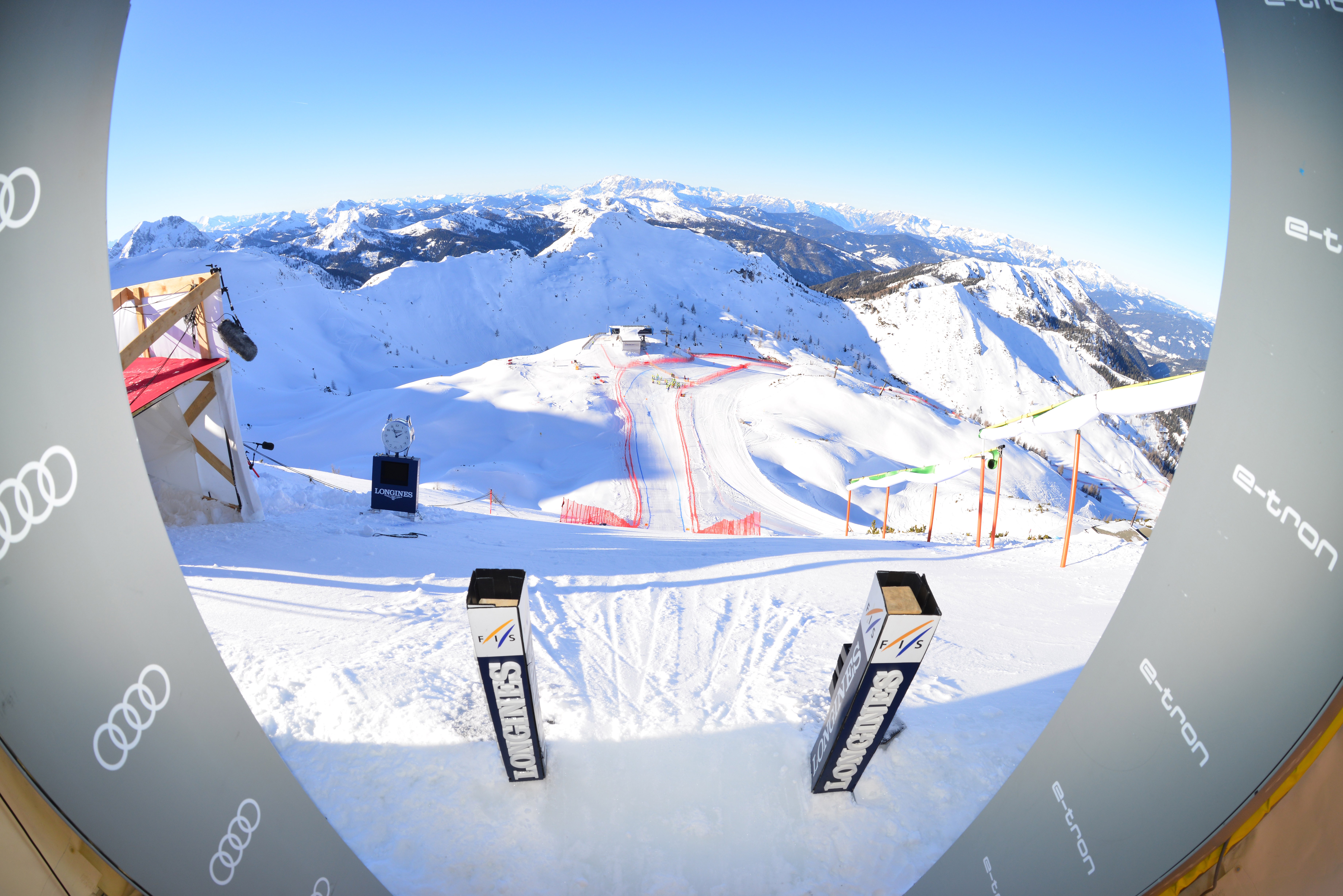 In einer Fahrtzeit von 1:50 Minuten führt die spektakuläre Abfahrt vom Gamskogel durch das Kälberloch bis zur Weltcuparena. Gleich zu Anfang beschleunigen die Läuferinnen auf dem steilen Starthang in fünf Sekunden auf über 100 km/h und im Laufe der Abfahrt absolvieren sie mehrere herausfordernde Sprünge, Kurven und Kompressionen. Es ist also nicht verwunderlich, dass die Strecke als eine der spektakulärsten und technisch anspruchsvollsten im gesamten Damenweltcup gilt.