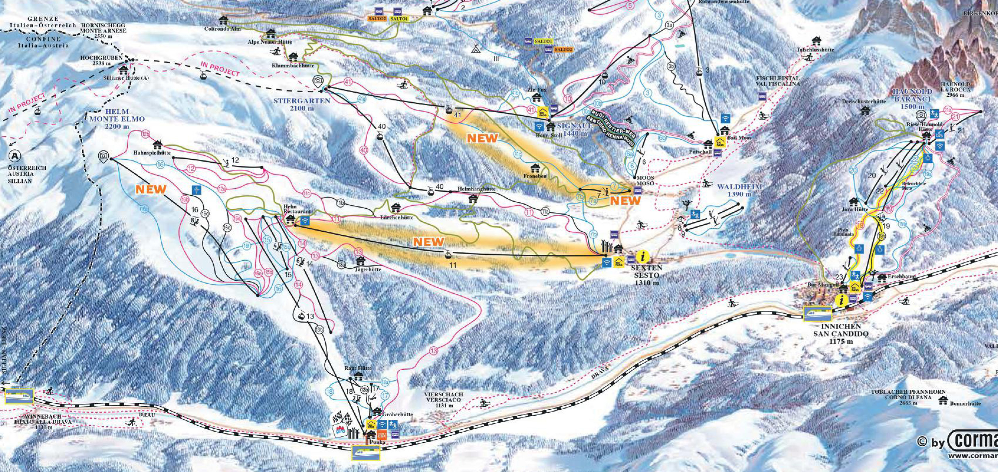 Außerdem ist vom Stiergarten ein Anschluss ans österreichische Skigebiet Sillian vorgesehen. Dann könnte man mit den Skiern von Südtirol bis nach Österreich fahren und hätte 160 Pistenkilometer zur Auswahl (mehr Infos). Geplanter Baustart für die Verbindungsbahn soll im Sommer 2021 sein. Ob dies in Zeiten der Corona-Pandemie gehalten werden kann, ist aber fraglich.